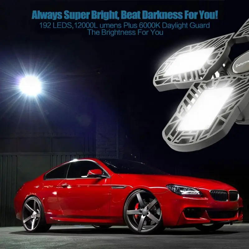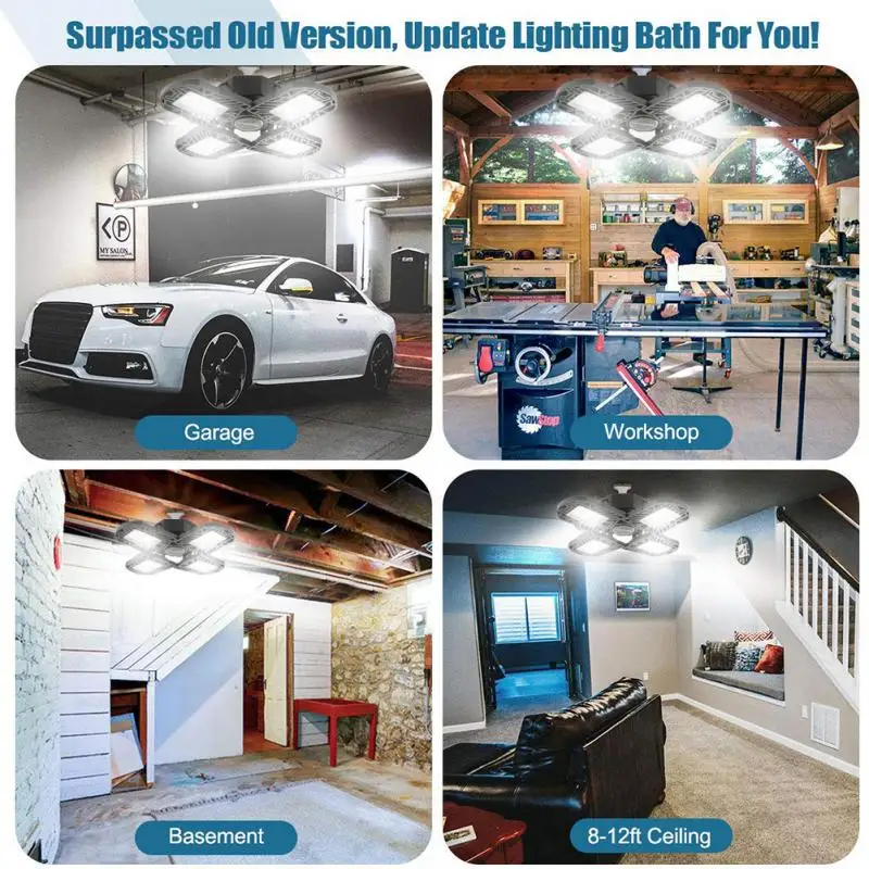 -Супер яркий светодиодный гаражный свет-с 4 Ультра-яркими регулируемыми алюминиевыми светодиодными головками-он оснащен светодиодной технологией с 4*48 шт. высококачественных диодов, которые Всего 12000 люменов, CRI80 +, 6000K Дневной свет для вашего гаража, обеспечивая лучший опыт внутреннего освещения.