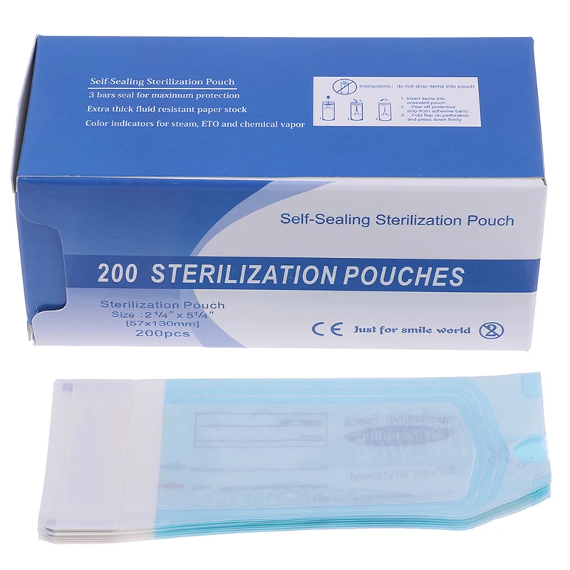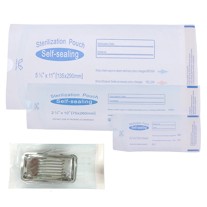 200 шт. в коробке; Размер сумки: Выберите из 7 вариантов размера; Самогерметизация, тройная герметизация для дополнительной прочности; Для использования в газовых, паровых и паровых стерилизаторах; Отлично подходит для использования в татуировках; Пирсинг; Ювелирные изделия для тела и стоматологические медицинские инструменты и оборудование.