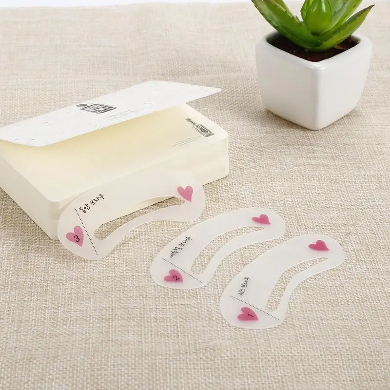 3. Выровняйте пунктирную линию с естественным началом и конечными точками бровей и нажмите на лицо, поместив большой палец и указательный палец на формы сердца руководства по рисованию.