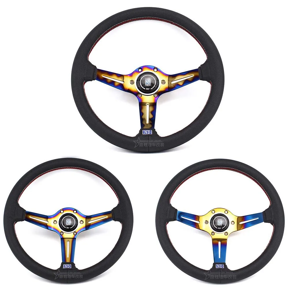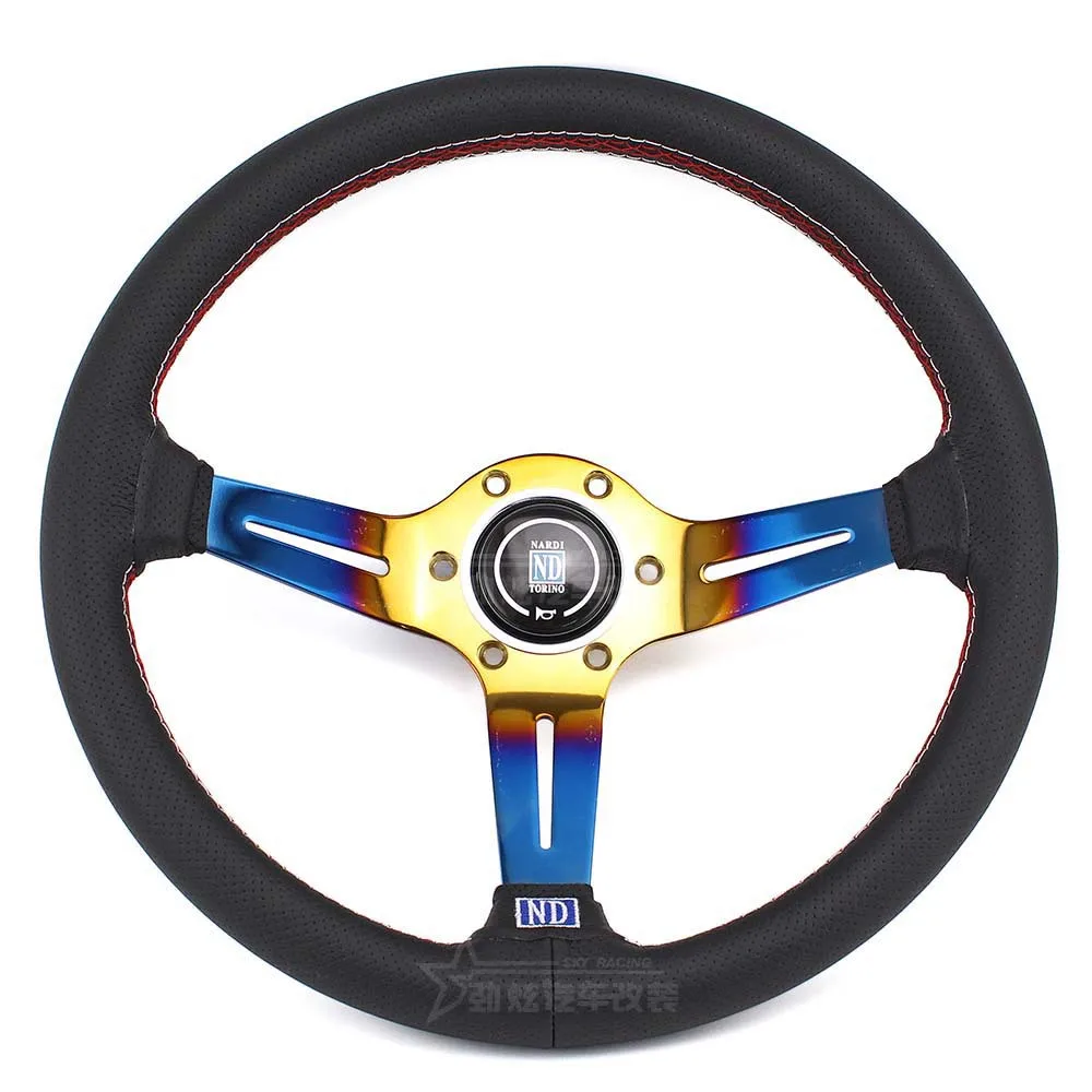 Автомобильное модифицированное универсальное 14-дюймовое кожаное Золотое обжаренное синее Рулевое колесо для конкурентного дрифта крутое быстросъемное рулевое колесо