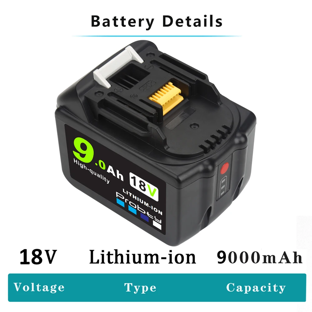 18В 9.0Ah батарея Makita BL1830 BL1860 BL1840 BL1850 BL1860 194204-5 18 вольт 9000 мАч Литий-ионная Замена Описание товара Тип: замена Makita BL1830 Напряжение: 18 в Емкость: 9000 мАч Тип батареи: литий-ионный Описание зарядки: Источник питания: 100-260 в Тип вилки: штепсельная вилка европейского стандарта Частота: 50-60 Гц Выход: 3A Замена: Для Makita 194204-5 194205-3 194309-1 194230-4 BL1815 BL1830 BL1840 LXT400 Совместимые модели: Введите (CTRL + F), чтобы найти вашу модель. BDF453SHE,BDF454Z,BHP452, BML184, BML185, BST221Z,BTDW251Z,ML185,TD140D, TW251D, BCS550Z,BDA350 BDA350Z, BDF451, BDF451Z,BFR550L, BFR550Z,BFR750, BFR750L, BFR750Z,BFS450RFE, BFS450Z,BGA452, BGA452Z BHP451SFE, BHP451Z,BHP453, BHP453SHE,BHP454, BHP454Z, BHR202RFE, BHR202Z, BHR240, BHR240Z, BHR241, BHR241Z BJR181X, BJR181X1,BJR181Z,BJR182X, BJR182Z,BJS130Z,BJV180Z,BPB180Z, BSS501Z,BSS610SFE, BSS610X2,BSS610Z BSS611X, BSS611Z, BTD140SFE, BTD140Z, BTD141, BTD141Z, BTW450, BTW450Z, BUB182, BUB182Z,BVR350, BVR350Z BVR450, BVR450Z,BVR850, BVR850Z,DF454D, DF454DRFX, DF454DZ, HP454D, HP454DRFX, HP454DZ,HR202D, HR202DRFX HR202DZK,JR120D, JR120DRF, JR120DZK,ML184 (фонарик),MR100, MR100W,PB108D, PB108DRFX, PB108DZ,TD144DRFX TD144DZ,TD251DRFX, TD251DZ. Примечание: 1. Полностью зарядите аккумулятор перед первым использованием. Подключите зарядное устройство к источнику питания перед зарядкой. 0% пожалуйста, заряжайте немедленно 2. Когда вы закончите использовать аккумулятор, извлеките аккумулятор из инструмента, очистите и откалибруйте его и поместите в Относительно сухое, прохладное место. 3. Пожалуйста, используйте правильное зарядное устройство, пожалуйста, не используйте литиевое зарядное устройство для Ni-Cd и Ni-MH батареи. Новый дизайн: 1. Светодиодный индикатор, может отображать заряд батареи. Избегайте чрезмерного использования 2. Знать, сколько заряда вы оставили в батарее с светодиодный idicator, активированный с помощью кнопки. Посылка включает в себя Как вы выбираете