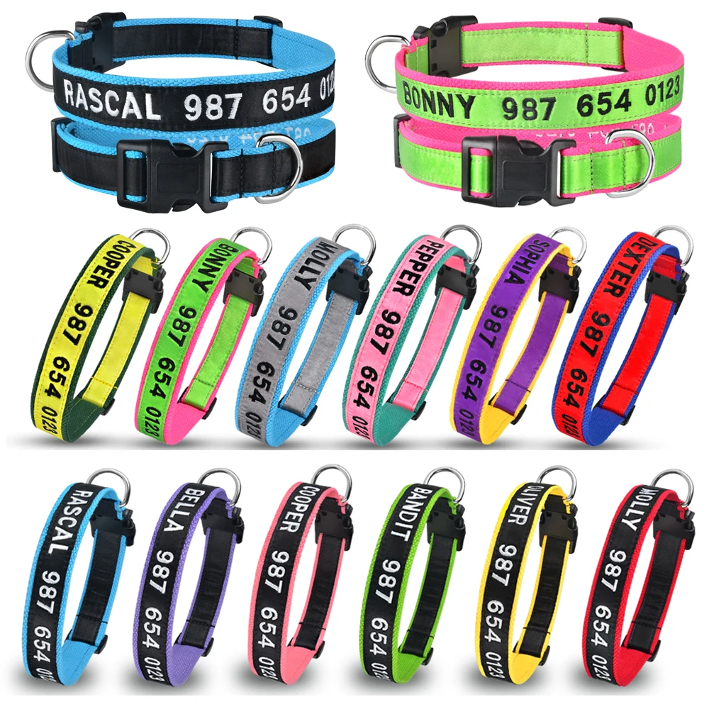 Персонализированные вышитые нейлоновые ошейники для собак на заказ ошейник с идентификатором щенка для маленьких средних и больших собак Регулируемый ошейник для питомцев