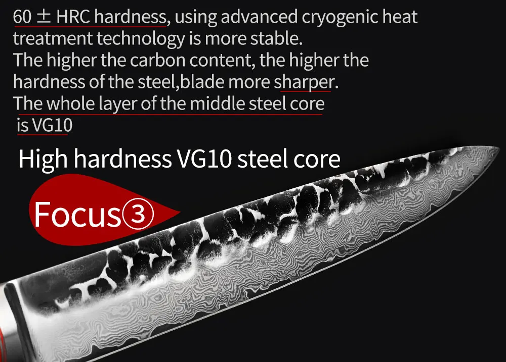 【Уникальный и красивый 】 этот нож имеет уникальное и красивое дамасское лезвие («молотый узор»). Он оснащен вручную заточенное и ручной дорожный лезвие сердечник из VG-10 нержавеющая сталь, которая распространяется на обе стороны с 33-слой Дамасская сталь нержавеющая сталь (50/50 симметрично наземный двойной скошенный край) 【Высокое Качество 】 изготовлен из японской VG-10 стальной сердцевины 67 слоев дамасской стали, высококачественный специальный нож шеф-повара, HRC (твердость) 60, кухонные ножи подходят для резки мяса, рыбы, овощи и фрукты и т. Д. 【Удобный и долговечный 】 ручка изготовлена из нержавеющей стали 430, внешний слой покрыт экологически чистым и высококачественным грецким орехом. Ручка удобная, прочная и жесткая, что уменьшает усталость оператора. 【 Антипригарная поверхность ножа неровный молоток с антипригарным эффектом, профессиональный нож шеф-повара имеет острое лезвие и лезвие 15 °. Обладает высокой твердостью и износостойкостью. В использовании можно использовать левую и правую руки, в то же время вы можете нарезать и даже нарезать точно, что облегчает использование. [Идеальный подарок] дамасский нож не только острее, но и мирового класса. Это отличный подарок для ваших любимых или родителей, готовя интересные блюда и наслаждаясь едой.