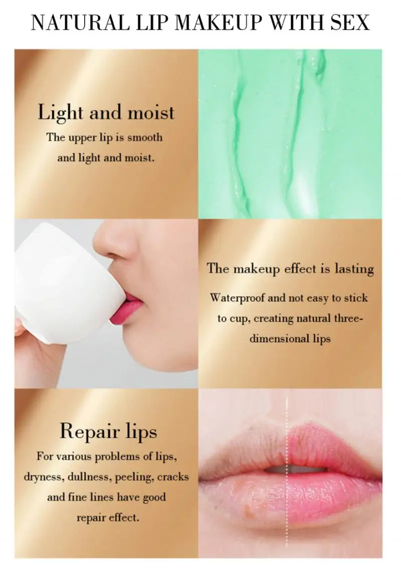 Здоровые ингредиенты, натуральные экстракты растений обладают деликатным прикосновением, яркой и прозрачной водой, а также ровными линиями губ.