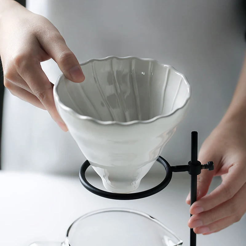 Обработка: Цветная глазурь, ручная выдувкаЕмкость кофейной чашки: 700 млМатериал:Керамика (кофейный фильтр)Железное Искусство (держатель)Высокое боросиликатное стекло (кофейник)Подходящие случаи: дом, кафе, офисОсобенности:1. На внутренней стенке керамического кофейного фильтра имеются полосы. Сверху вниз полоски постепенно становятся тоньше, что больше способствует полному контакту воды и кофейного порошка, поэтому экстракция становится более идеальной.2. Кофейная чашка изготовлена из боросиликатного стекла высокой прозрачности, выдерживает температуру до-20-150 ℃.3. Высоту держателя можно свободно регулировать, а также можно разобрать, его можно наносить на кофейные чашки различного размера.Обратите внимание:1. Из-за ручного измерения размер может иметь погрешность 1-2 см.2. Держатель fiter является изделием из железа, интерфейс может иметь неравномерное распыление краски, что не влияет на использование.