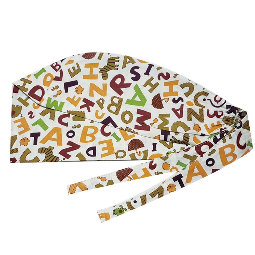 Цветочный принт, буквы, защита от пыли, главный хирург, Scrub Cap Bouffant Регулируемая шляпа