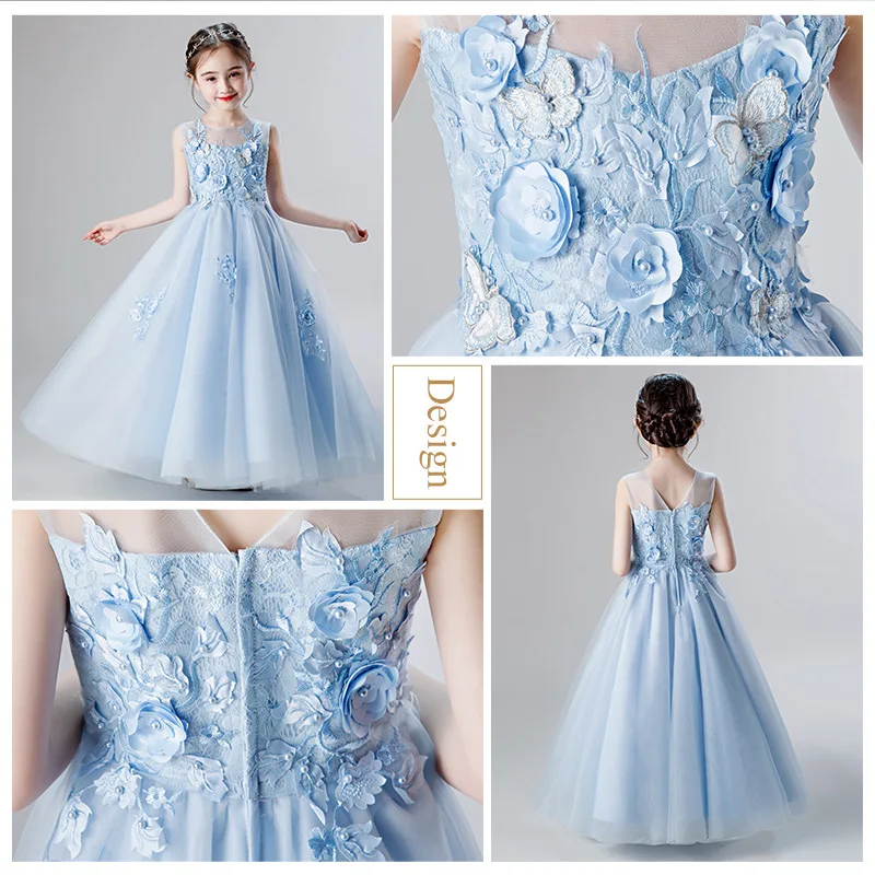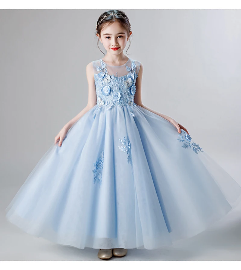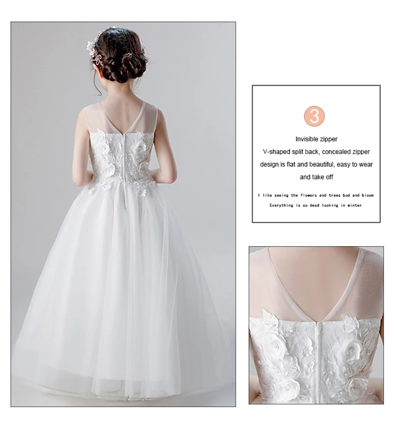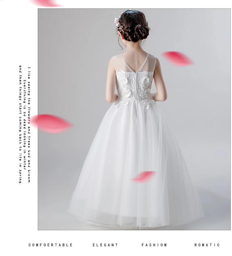 Новые белые элегантные платья принцессы с фатиновой юбкой для девочек длинное платье с цветами для девочек на свадьбу и вечерние платья для детей 10, 11, 12, 14 лет