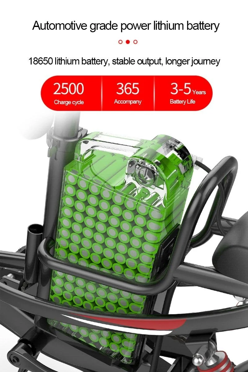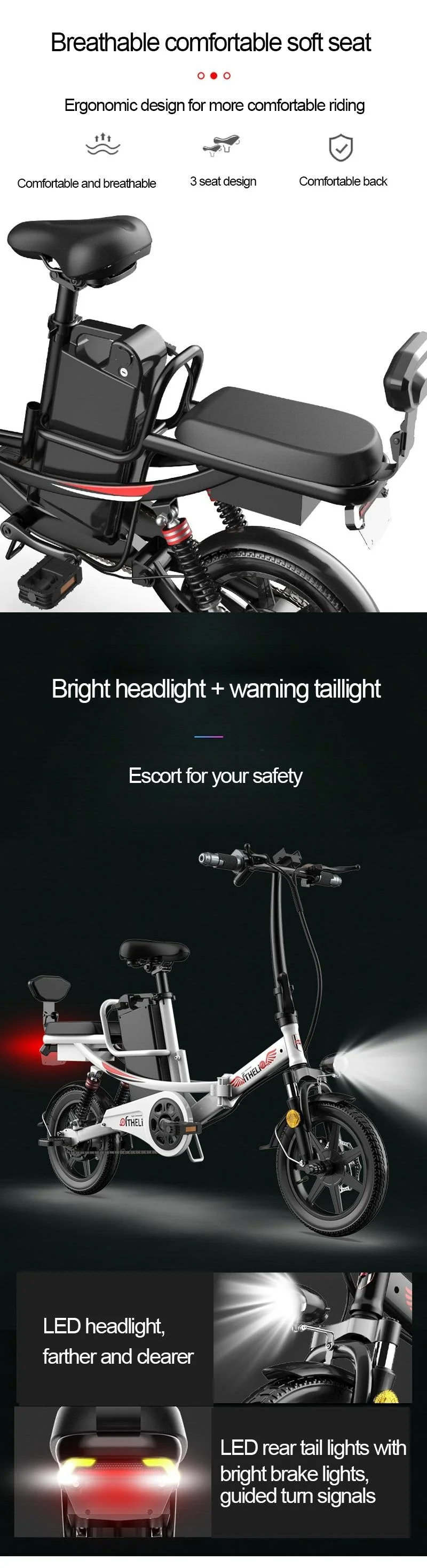 Размер шин: 14 дюймов вакуумная шинаМатериал: углеродистая стальЦвет:Белый, черный, красныйМощность двигателя:350 ВтЕмкость аккумулятора: 8 Ач/11 Ач/15 Ач/20 Ач литиевая батареяМаксимальный диапазон:8 Ач: около 25 км11 Ач: около 40 км15 Ач: около 60 км20 Ач: около 90 км(Зависит от веса, скорости, дорожного состояния и погоды.Тест сделан на весе гонщика 50 кг)Максимальная скорость: около25 км/чНапряжение:48 ВВремя зарядки: About6-8HМаксимальная нагрузка: около 120 кгРазмер в сложенном виде: 85*34*62 смРазмер расширения: 140*97*65 смМаксимальная нагрузка: 120 кгУгол подъема: около 25 °Посылка: электровелосипед, зарядное устройство.Особенность:Система переднего и заднего дискового тормоза + силовой тормоз EABS, система передней и задней амортизационной подвески, умный ЖК-дисплей, светодиодсветильник, задний фонарь, светильник поворота, съемный аккумулятор, режим педали, режим швабры и чистый Электрический режим.