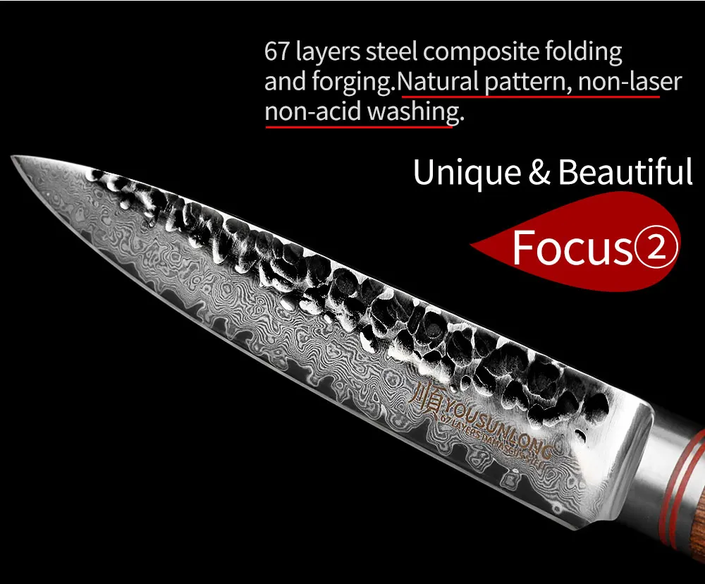 【Уникальный и красивый 】 этот нож имеет уникальное и красивое дамасское лезвие («молотый узор»). Он оснащен вручную заточенное и ручной дорожный лезвие сердечник из VG-10 нержавеющая сталь, которая распространяется на обе стороны с 33-слой Дамасская сталь нержавеющая сталь (50/50 симметрично наземный двойной скошенный край) 【Высокое Качество 】 изготовлен из японской VG-10 стальной сердцевины 67 слоев дамасской стали, высококачественный специальный нож шеф-повара, HRC (твердость) 60, кухонные ножи подходят для резки мяса, рыбы, овощи и фрукты и т. Д. 【Удобный и долговечный 】 ручка изготовлена из нержавеющей стали 430, внешний слой покрыт экологически чистым и высококачественным грецким орехом. Ручка удобная, прочная и жесткая, что уменьшает усталость оператора. 【 Антипригарная поверхность ножа неровный молоток с антипригарным эффектом, профессиональный нож шеф-повара имеет острое лезвие и лезвие 15 °. Обладает высокой твердостью и износостойкостью. В использовании можно использовать левую и правую руки, в то же время вы можете нарезать и даже нарезать точно, что облегчает использование. [Идеальный подарок] дамасский нож не только острее, но и мирового класса. Это отличный подарок для ваших любимых или родителей, готовя интересные блюда и наслаждаясь едой.
