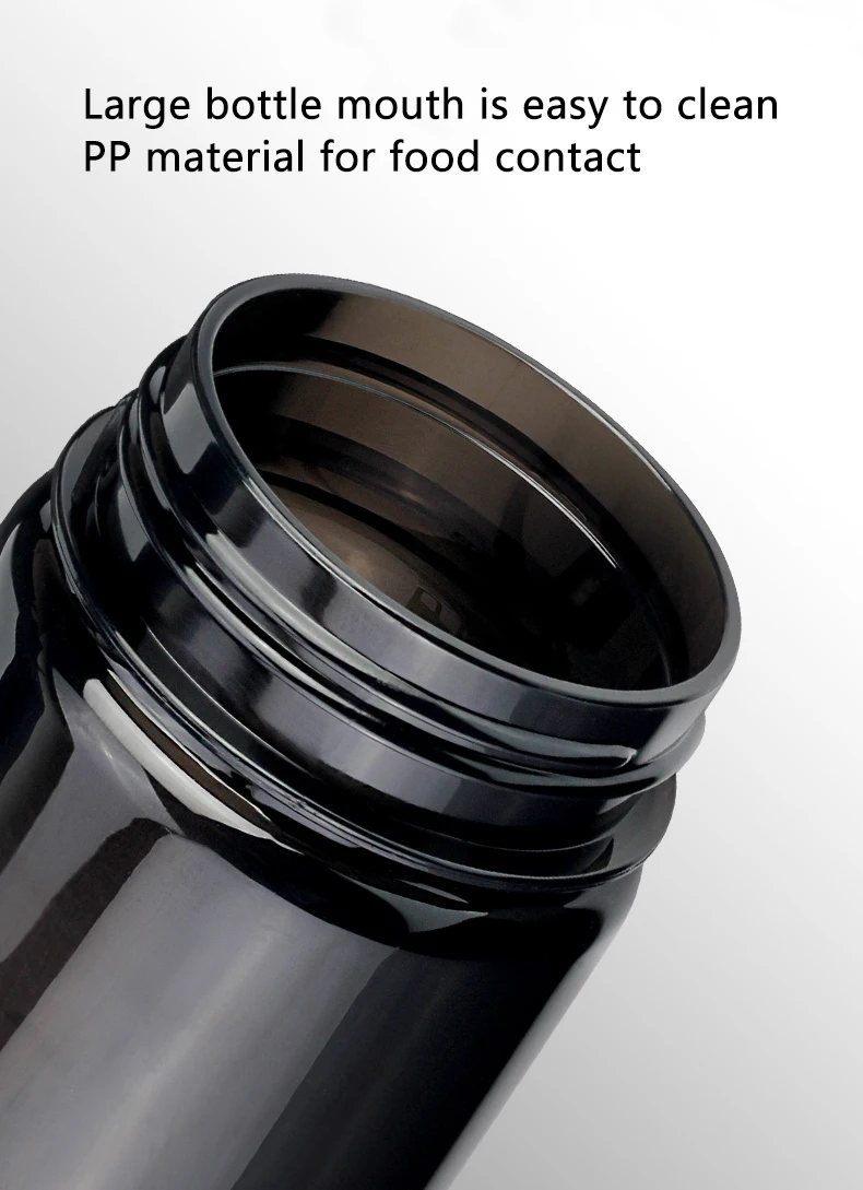 Название продукта: спортивная бутылка Емкость: 860 мл Температура термостойкости: от-5 ℃ до + 100 ℃ Материал: полипропилен для контакта с едой, ПК для контакта с едой Размер: 26,5*7,5 см