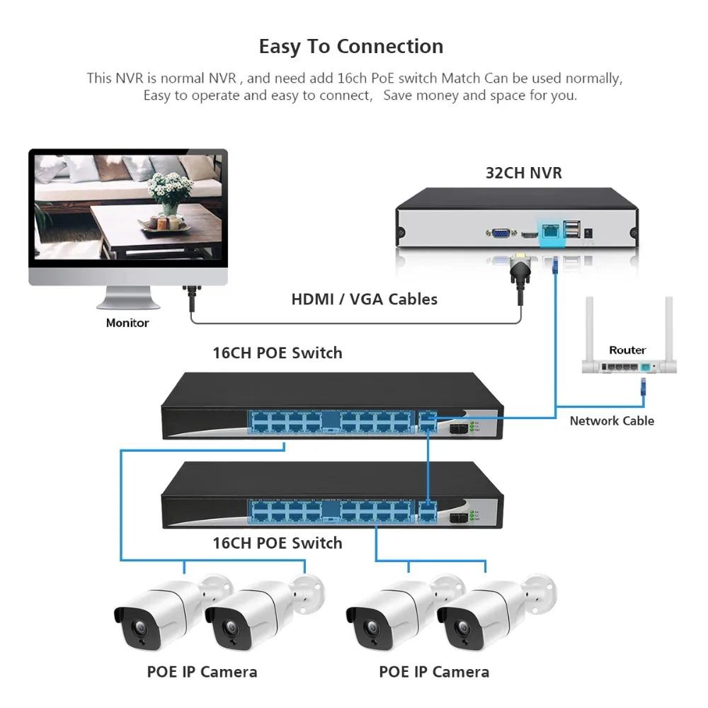 Характеристики H.265 POE NVR