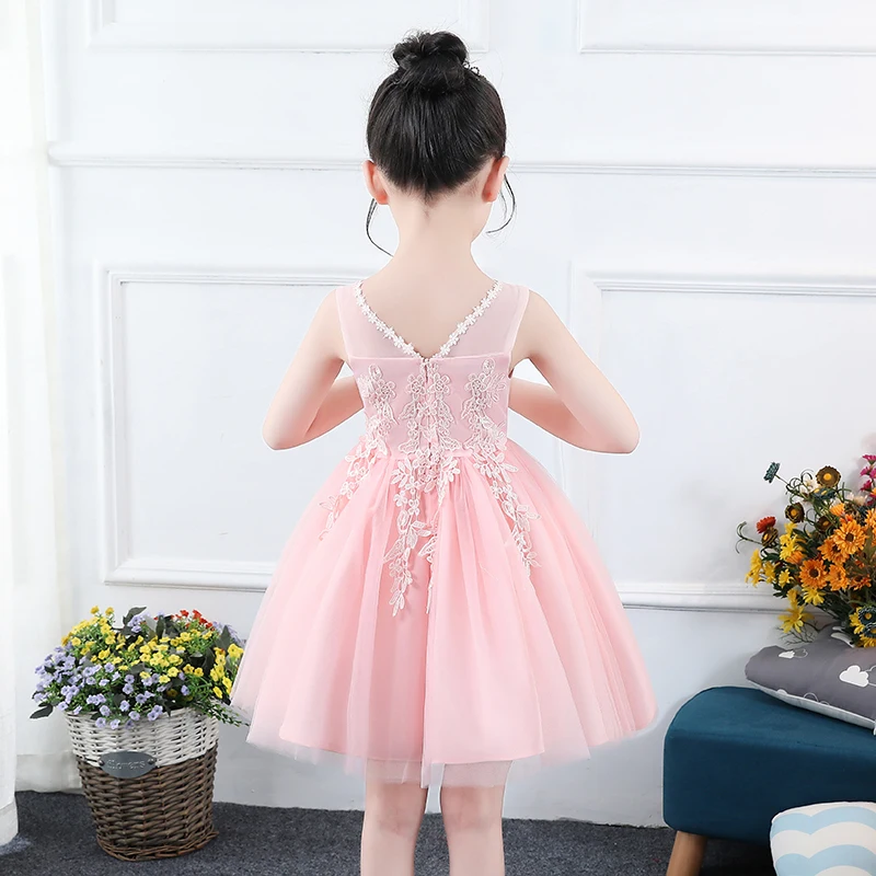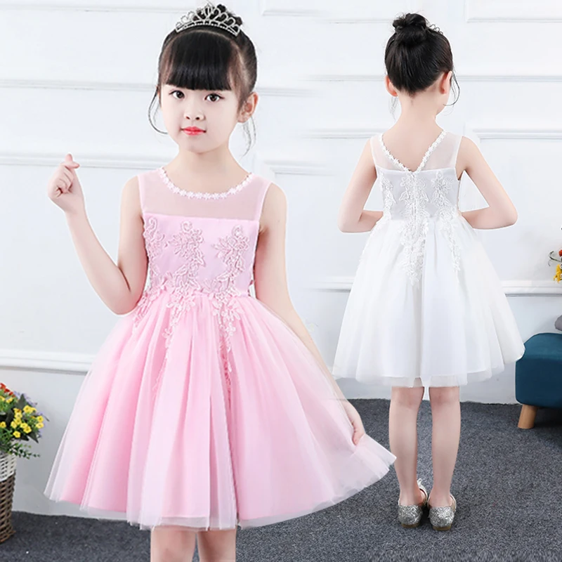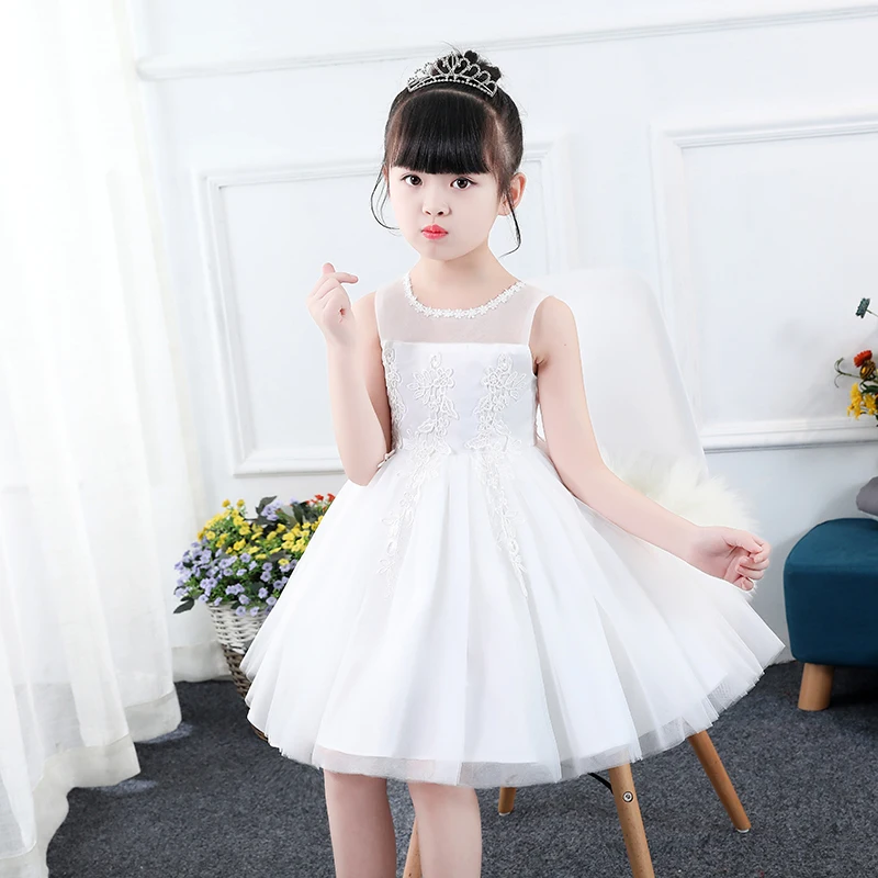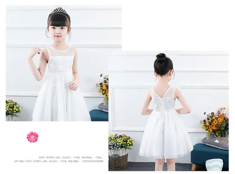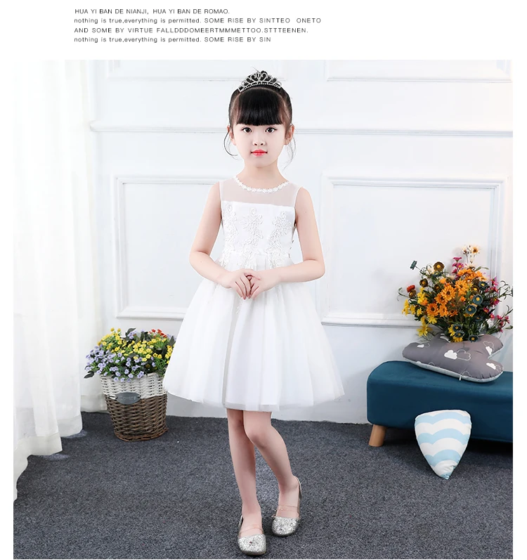 Элегантные платья принцессы для девочек; Белое фатиновое кружевное платье с аппликацией для девочек; Свадебное платье для девочек; Вечерние Платья с цветочным узором для девочек на день рождения
