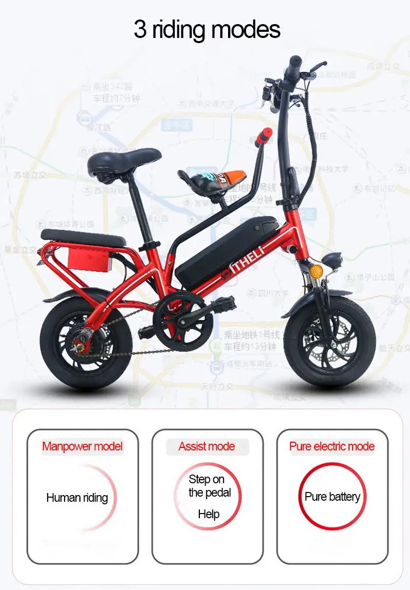 Мини-электрический велосипед с литиевой батареей для родителей и детей