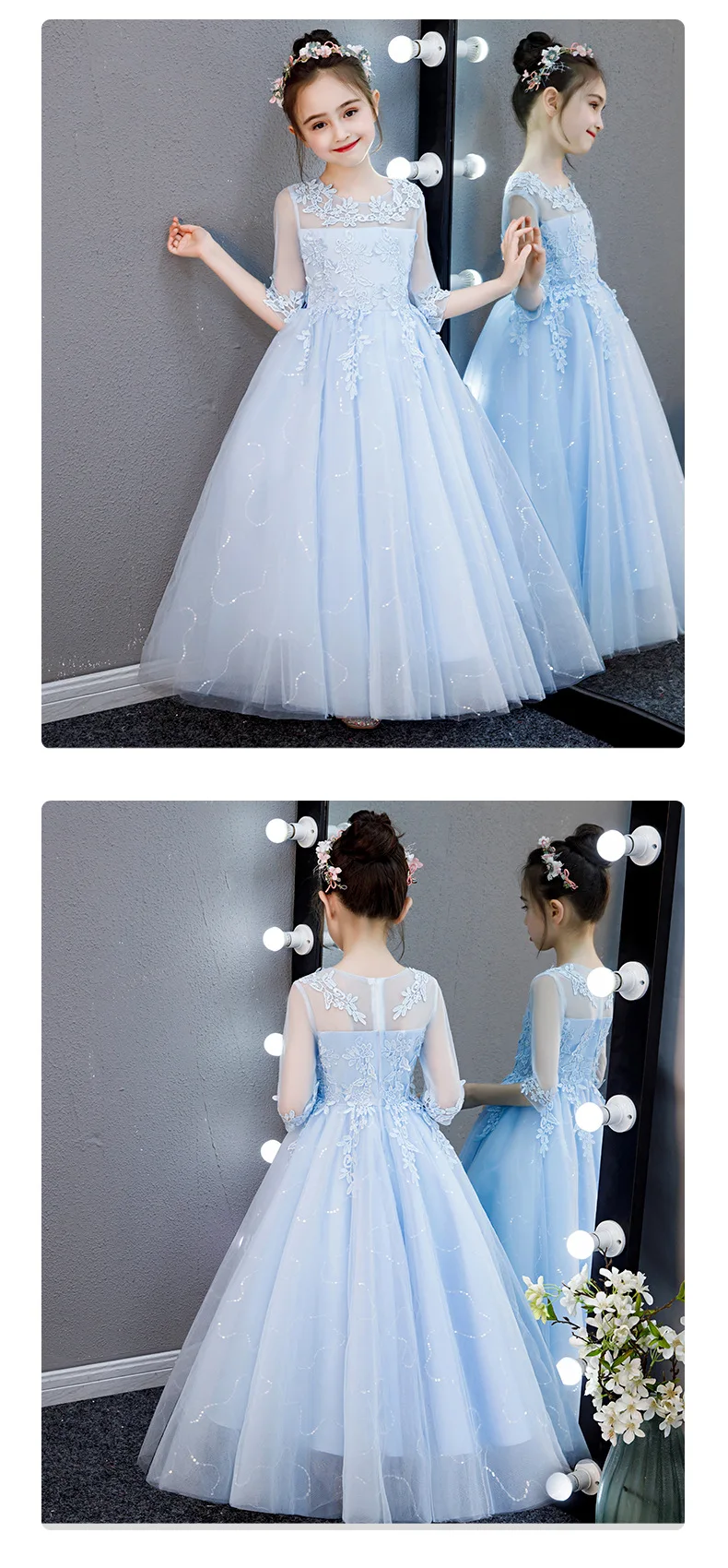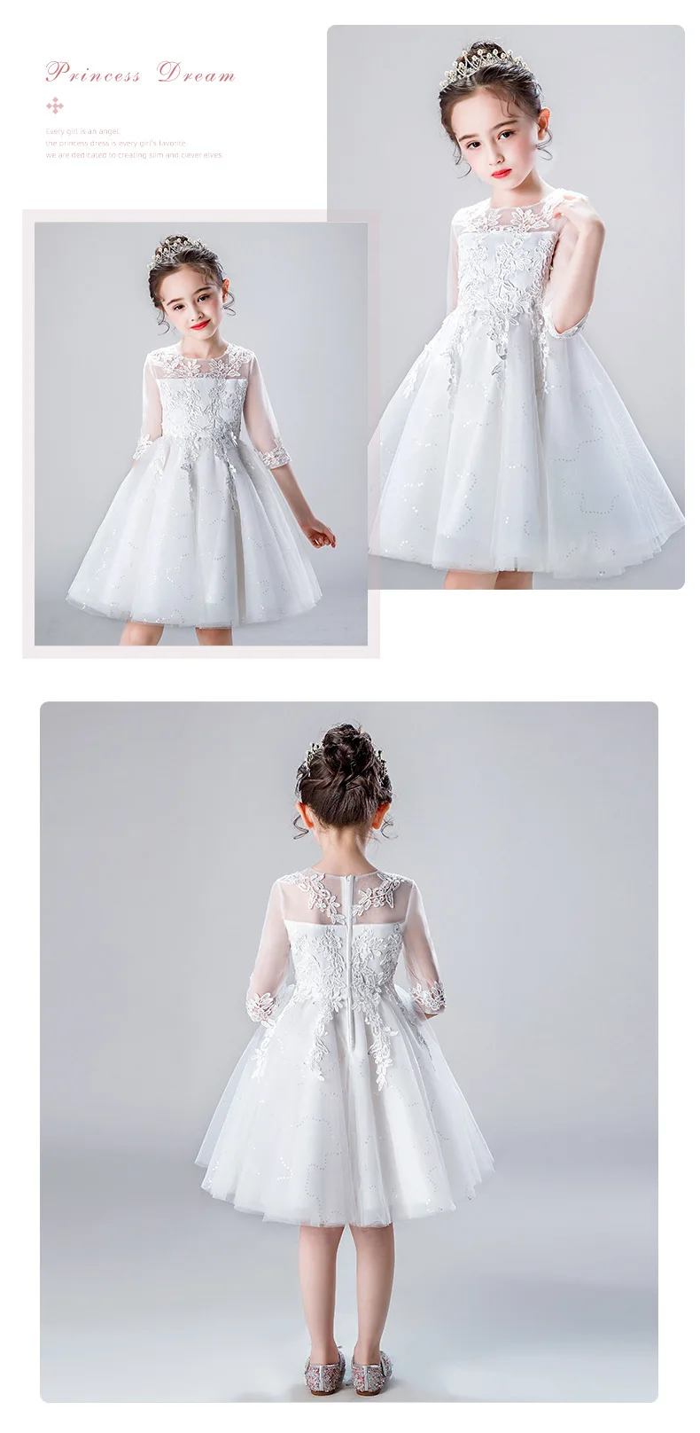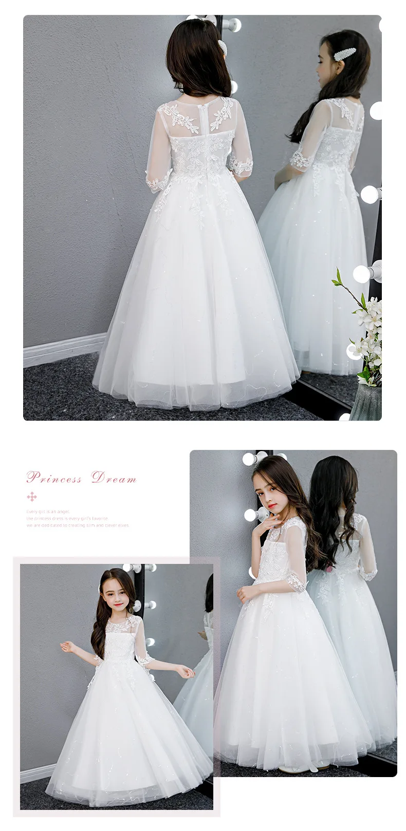 Элегантные платья принцессы для девочек; Розовое фатиновое кружевное платье с аппликацией для девочек на свадьбу; Вечерние платья для девочек на день рождения с цветочным узором