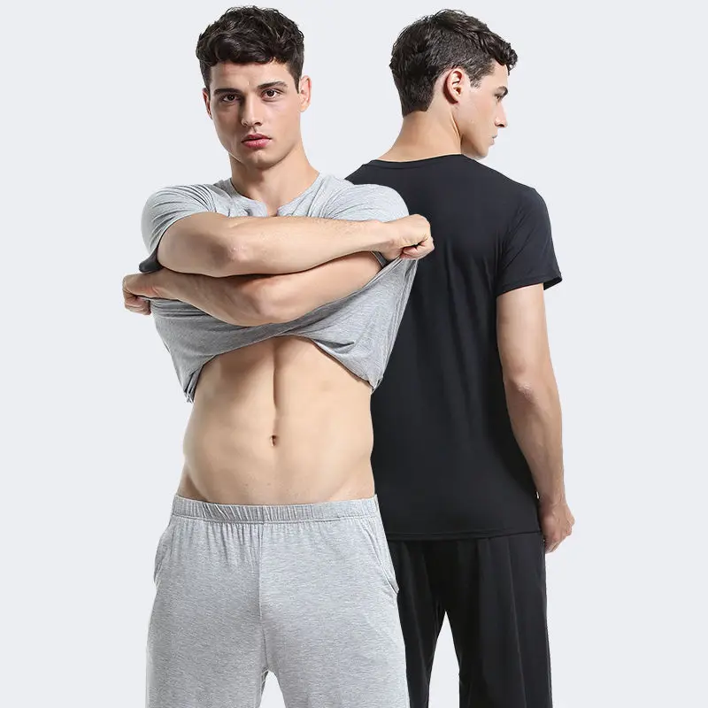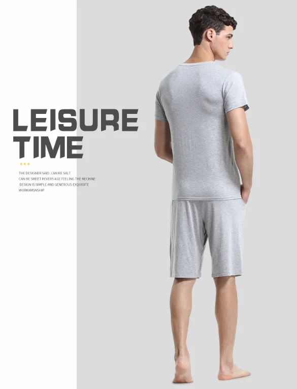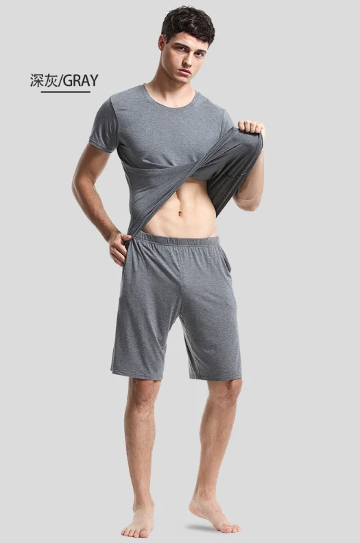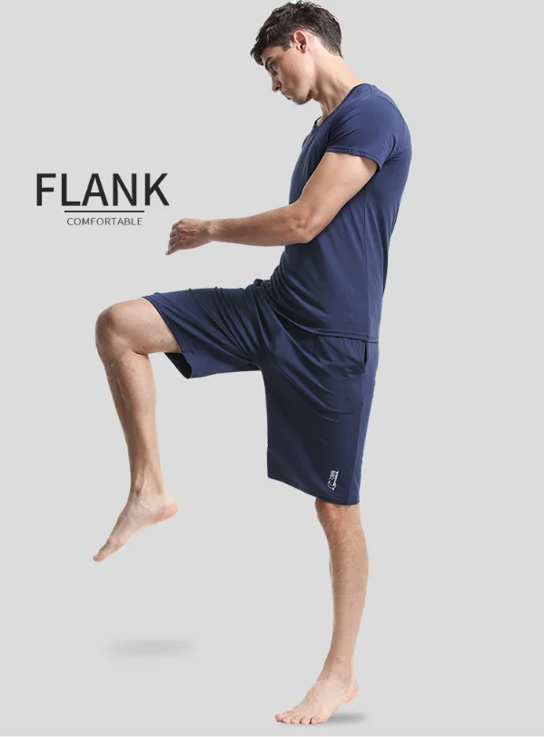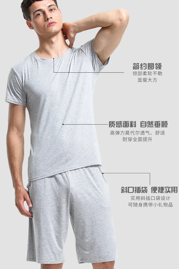 Мужская домашняя одежда для отдыха, комплект из Tencel модала, натуральный Гладкий костюм с короткими рукавами, можно носить внутри и для ношения на улице, повседневные; Tencel модальное Волокно имеет гладкую поверхность, которая придает текстилю Роскошный блеск и может поглощать более экологически чистые красители. Это более ослепительно, чем хлопковая ткань. Удобный дом, внутри и снаружи, подходит для различных мест отдыха, простой круглый вырез, натуральный гладкий, Высокоэластичный модальный дышащий, удобный и прочный, полностью Улучшенный; Диагональный карман, портативное использование, может переносить мелкие предметы; Удобный и гибкий, он движется вместе с вами и не легко ослабляется. Подходит на весь день и стирается повторно. Не легко деформируется.
