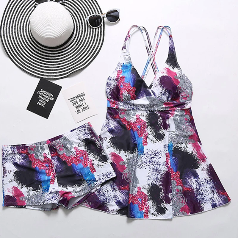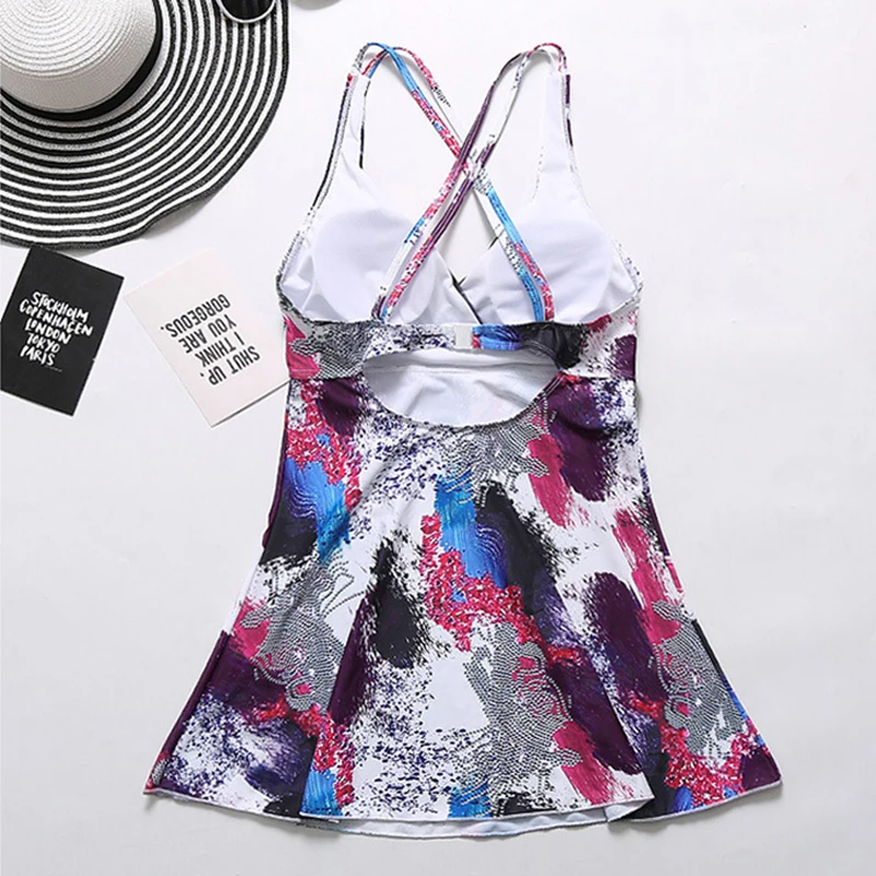Женский купальный костюм из двух предметов, юбка, шорты, одежда для плавания, женский купальный костюм пуш-ап, для женщин, на бретельках, с принтом, купальный костюм, пляжная одежда