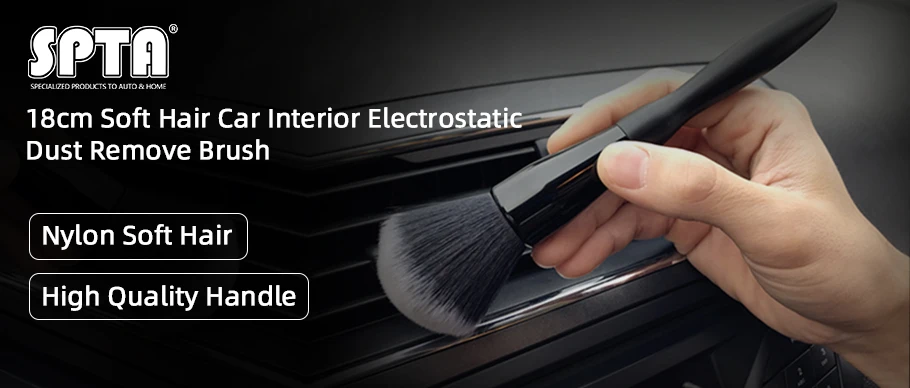 Мягкая щетка для волос SPTA устойчива к химическим веществам и безопасна для использования в тяжелых условиях. Верхняя часть щеточной головки затем вырезается до небольшой изгибы, что облегчает доступ в узкие пространства; Вокруг интерьера и кожаных складок.