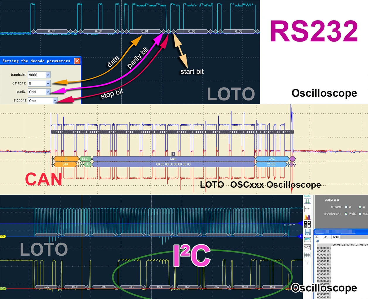 OSCH02G = OscilloscopeOSCH02+ 6 анализатор дорожной логики+ Модуль дифференциала изоляции Любой подходящий токовый зонд (C05AOrC20A)