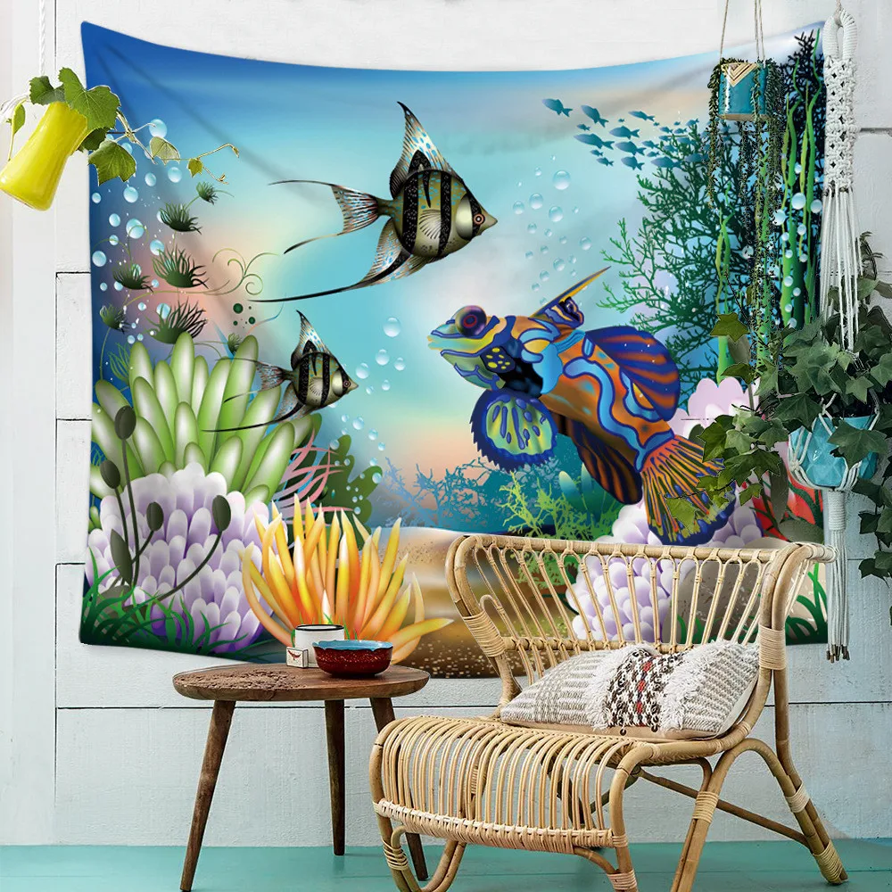 Underwater World Hippie Tapestry Animal Sea Turtle Dolphin Shark Wall Hanging Blanket Boho Home Decorative Wall Cloth Tapestries