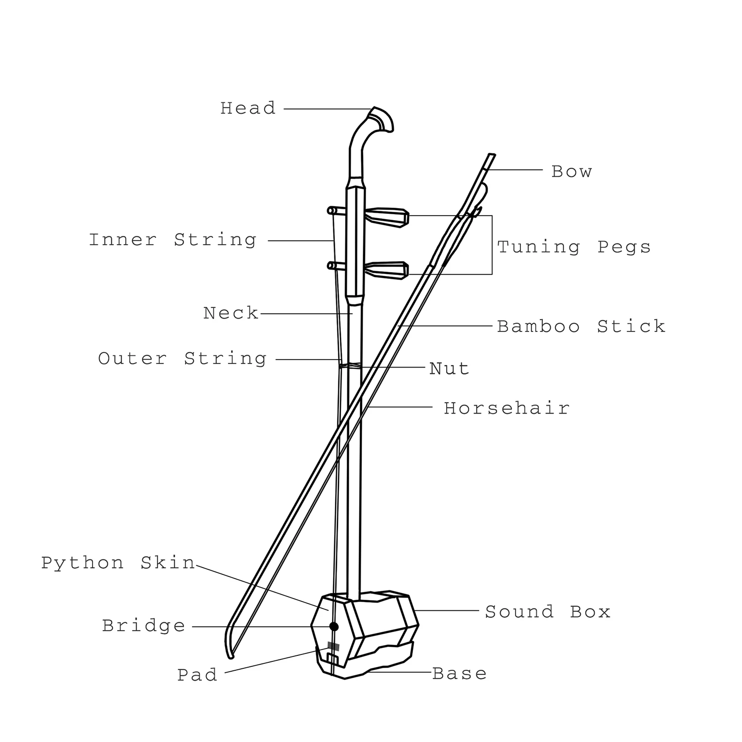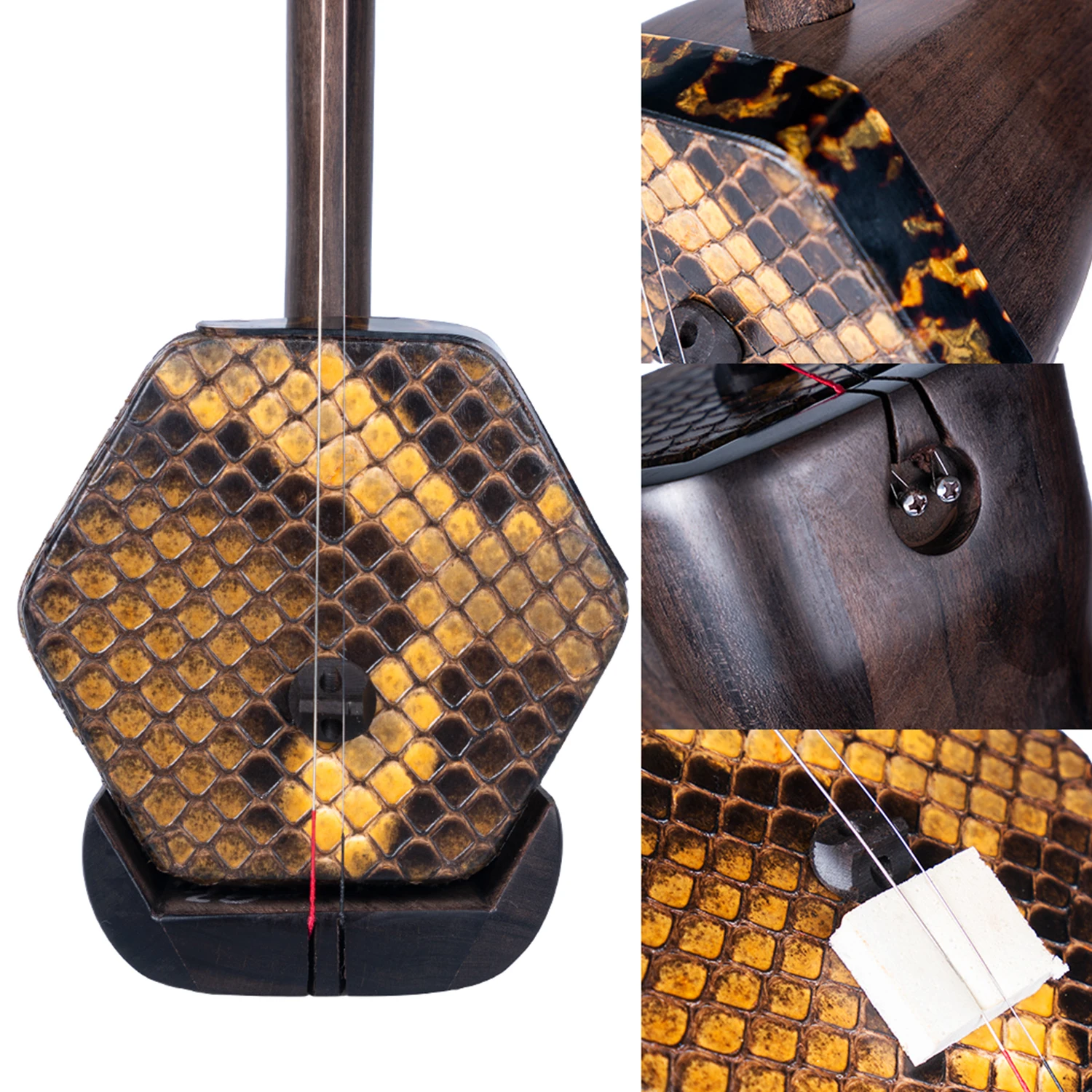 Пожалуйста, намажьте немного канифоли (не входит в комплект) на струнах перед воспроизведением, в противном случае erhu может не издавать звук.