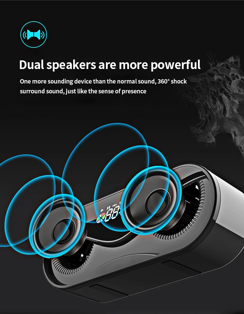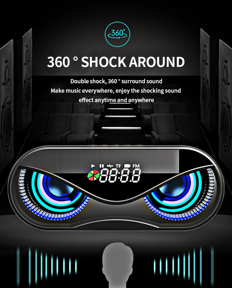 1,360 градусов окружает выдающийся звук, с 2 мощными динамиками, вдвое больше громкости обычных динамиков,Даже в шумных условиях на открытом воздухе, звук проникновения очень сильный.