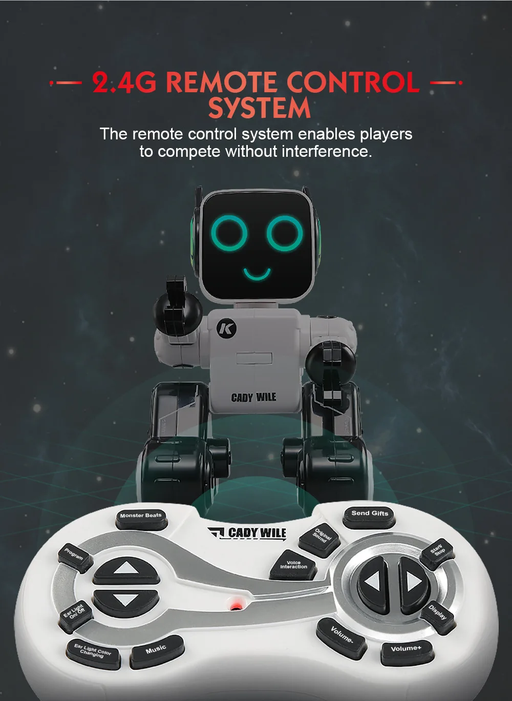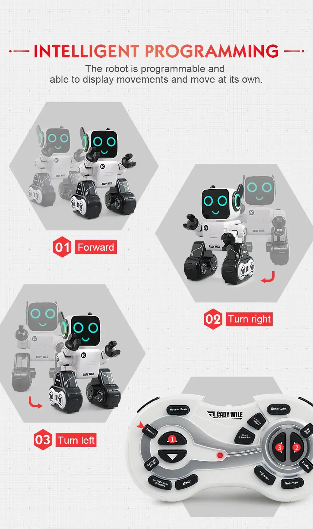 Нажмите кнопку «InteractiveSound Mode», робот будет хлопать один раз и воспроизвести записанный голос, который был оповещен Или хлопать дважды, а также Пойте и танцуйте.