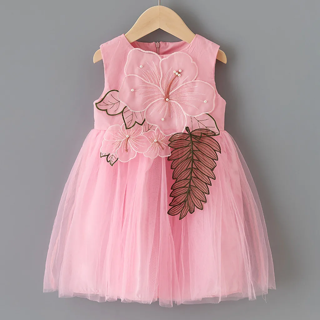 Детское однотонное газовое платье принцессы без рукавов с цветочным рисунком, наклейки с цветочным рисунком