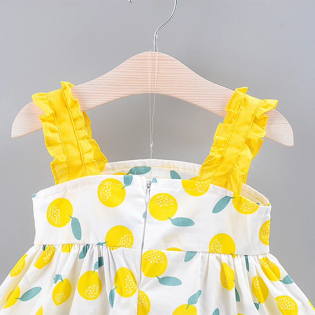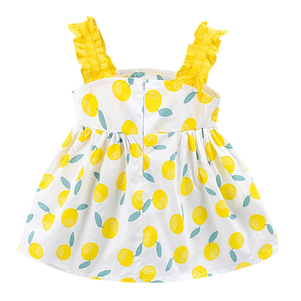 Летняя одежда для маленьких девочекМодные О-образный воротник, без рукавовФруктовЛимонаТуфли с бабочкамиРеменьВечерние милое платье принцессы