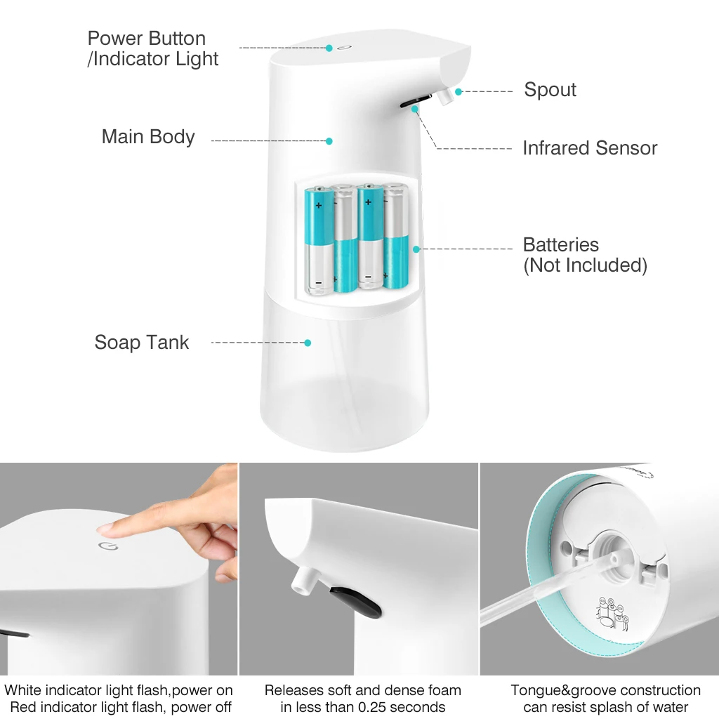 Вашим детям понравится мыть руки: Этот Пенящийся диспенсер для мыла делает мытье рук веселым и помогает детям создать здоровую привычку мыть руки; он выпускает нужное количество пены, так что вы можете ожидать, что не проливается или грязный столешница