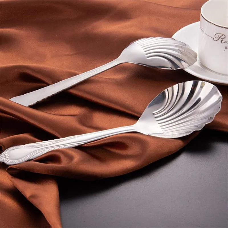 Сахарная ложка в форме раковины из нержавеющей стали, ложки для мороженого, кофе, чая, десерта, торта, ложка для чая, серебряные столовые приборы