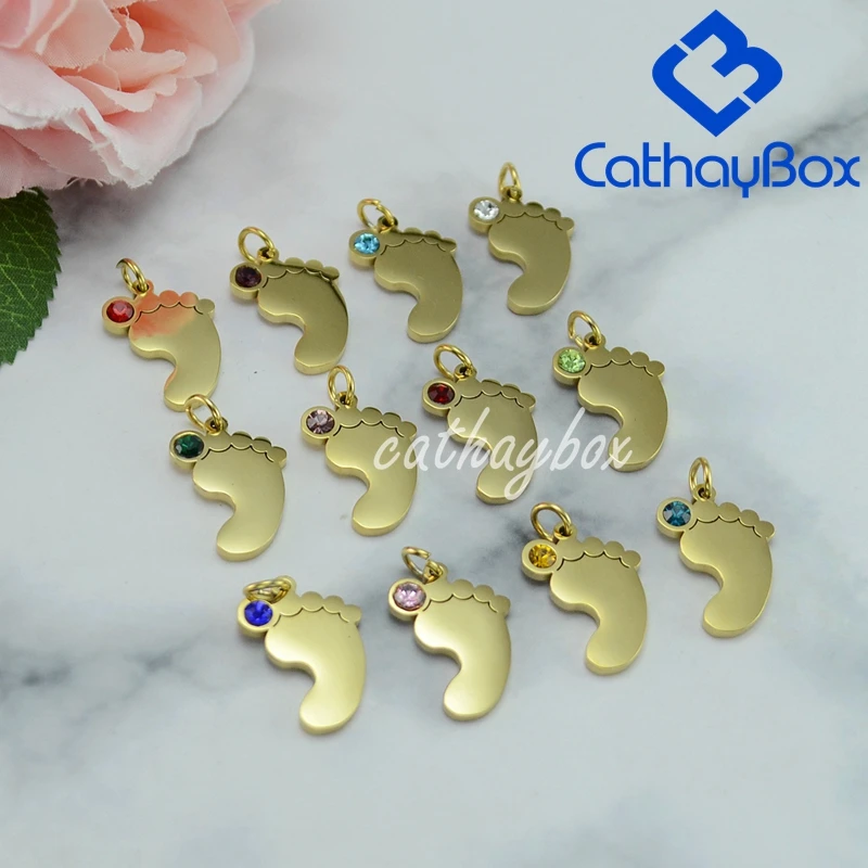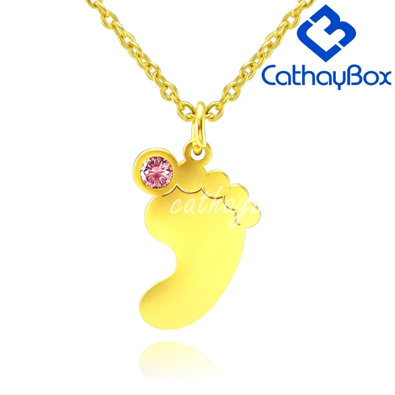 ***Personalized Stainless Steel Footprint Birthstone Pendant Necklace***