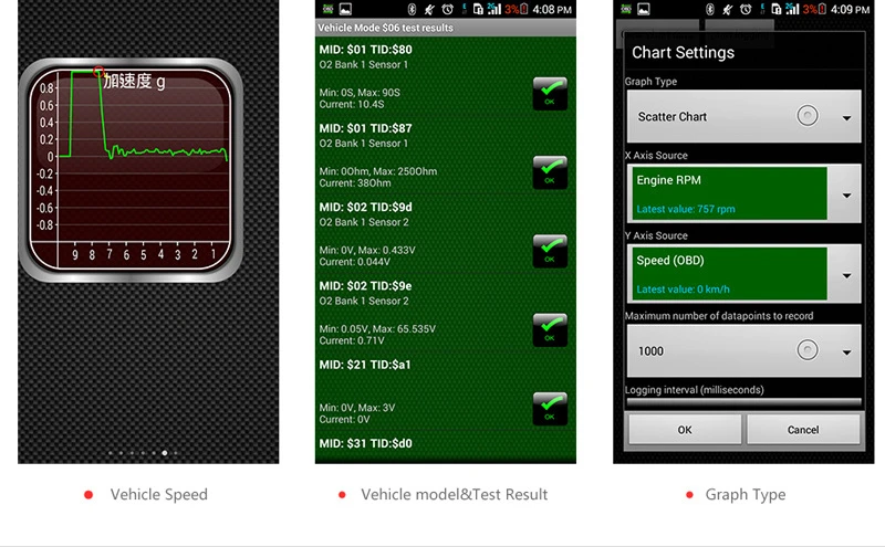 1. Чтение, удаление и неисправность описания кода-стандартные и Производители spetskodov. 2. Измерьте расход топлива. 3. Производительность автомобиля в режиме реального времени, такие как boost, Скорость транспортного средства, давление масла, температура охлаждающей жидкости, нагрузка двигателя, впускной коллектор Давление, положение дроссельной заслонки, значения датчика кислорода, воздухозаборник Температуры и многое другое. 4. Поверните MIL (проверьте сигнал двигателя). 5. Загрузка данных на внешние носители в различных форматах для более поздней печати. 6. Запись различных параметров, графического дисплея в реальном времени и многого другого. С iCar3 вы сможете выполнить полную компьютерную самодиагностику и даже исправить незначительные ошибки, не обращаясь к сервисным станциям. ICar 3 scan tool-это высококачественный инструмент для сканирования автомобиля, совместимый со всеми автоматическими OBD-II-протоколами.