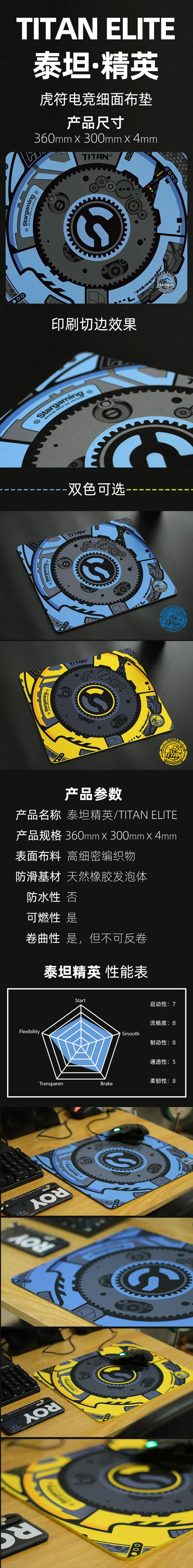 Esportstiger Титан Мягкая резиновая основа и ткань mousepad обеспечивают контроль и стабильность для оптимизации вашего конкурентного игрового опыта. Создан для качества и производительности на любой поверхности. Титан Доступно в двух цветах: синий и желтый.