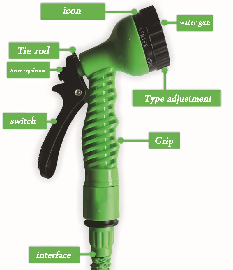 1. Водопроводная труба имеет волшебную функцию автоматического расширения и сжатия в 3 раза: она может автоматически расширяться после прохождения воды и автоматически вытягиваться на исходную длину после закрытия воды. 2. Широкое применение (используется для мытья автомобиля, внутренних и наружных дверей и окон, очистки пола, садоводства и садоводства, очистки бытовых сточных вод и т. д.). 3. Небольшой размер и легко хранить, просто небольшая коробка для хранения. 4. Вращающаяся конструкция регулировки брызг воды, с 7 узорами способов выхода воды. 5. Внутренний подъем, большой диапазон. 6. Простота установки и демонтажа, экономия времени и усилий, быстрая установка в течение трех секунд. 7. Сотрудничайте с кистью для вспенивания воды, чтобы облегчить очистку, защитить чистящую поверхность от вреда и эффективно сэкономить время 8. Хорошее качество, длительный срок службы, высокоэластичная внутренняя трубка, рукав из ткани высокой плотности, без завязывания, без закалки и небольшого объема складывания. Супер износостойкий. 9. Гуманизированная конструкция распылителя уделяет внимание деталям. Треугольное металлическое кольцо на разбрызгивающей головке может эффективно поддерживать переключатель, так что оно может автоматически распылять воду в течение длительного времени, что является более трудоемким. Меры предосторожности: 1. Длина, указанная на ссылке, является длиной использования после продления 3 раз после прохождения воды. Эффект расширения связан с давлением воды. Слишком низкое давление воды влияет на эффект удлинения водопровода, рекомендуется выбрать более длительную покупку! 2. Используйте водную трубу на гладкой дороге как можно больше. После использования вода в водопроводе должна быть слива в чистую и правильно храниться, чтобы увеличить срок службы водопровода.