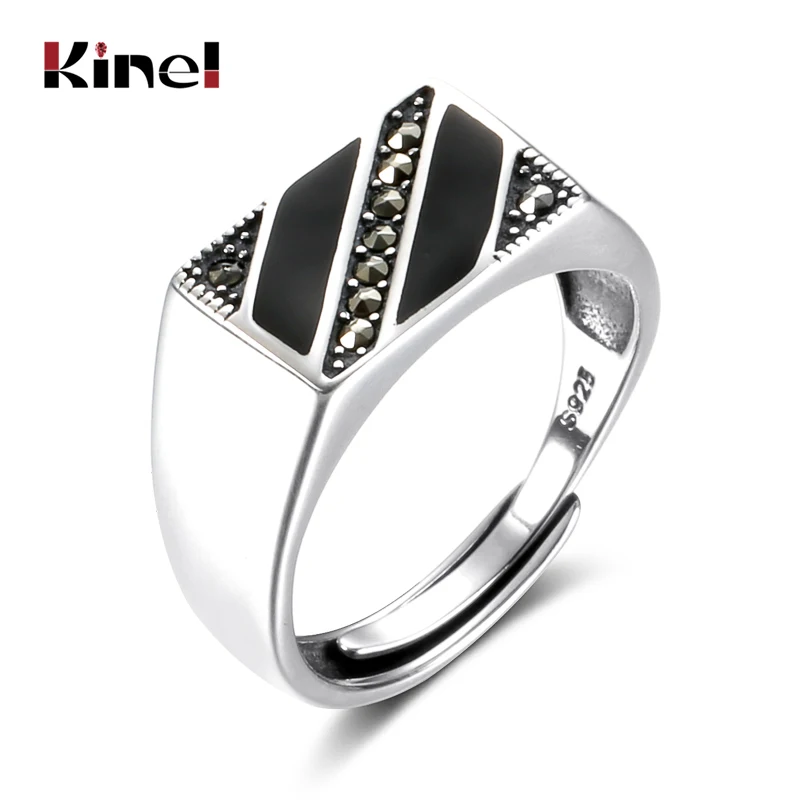 Kinel, Настоящее серебро 925 пробы, мужское кольцо, Имитация черного камня, квадратный плоский, высокая полировка, Средний Восток, изысканные винтажные Свадебные украшения Бренд: Kinel Винтажные Ювелирные Изделия Наименование товара: модные мужские кольца Основной камень: циркон Другое камень: циркон Материал: 925 пробы серебро Случаи: свидание/вечерние/Выпускной/подарок/День Святого Валентина