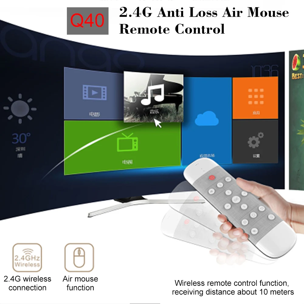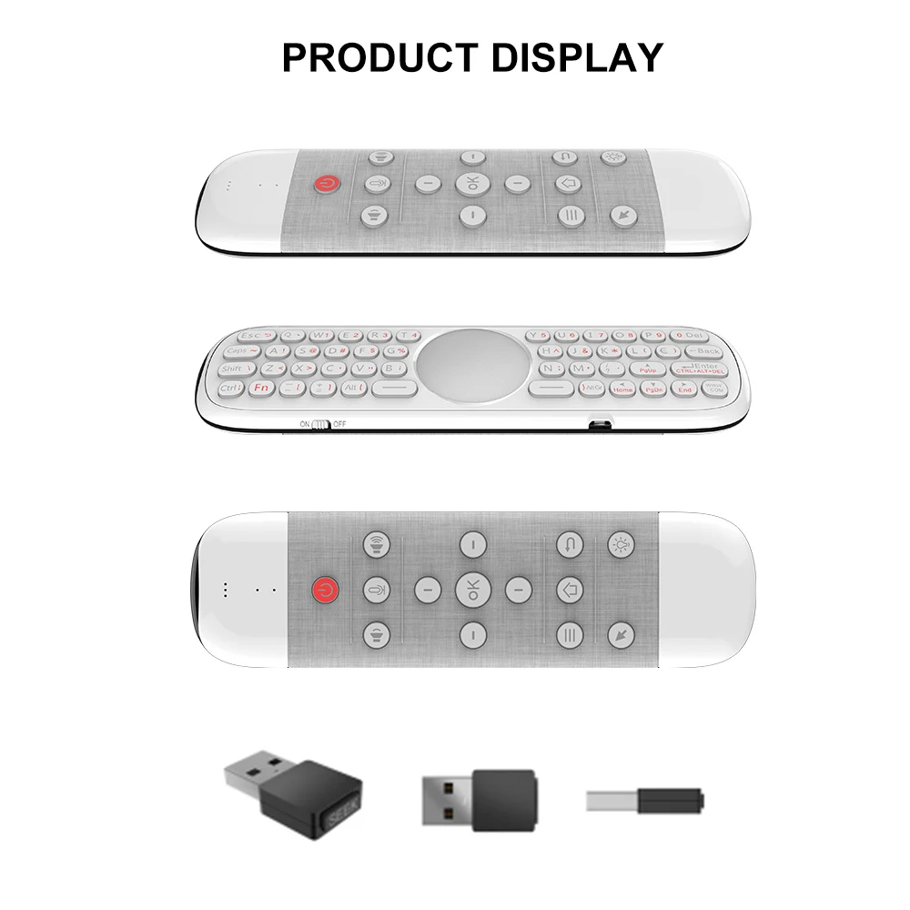 2,4 ГГц воздушная мышь с USB приемник, подключи и играй, вы можете наслаждаться удаленный беспроводной пульт дистанционного управления на диван-кровать. С помощью голосовых кнопок вы можете искать канал, который вы хотите смотреть, дизайн спереди и сзади, прост в использовании.