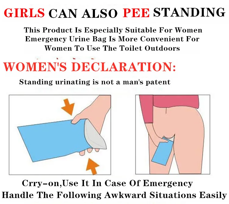 ■ Продукт представляет собой портативный аварийный туалет с Супер абсорбирующим отверждающим агентом и бактерицидом. Он может быстро впитывать мочу и превращаться в гелеобразное вещество, чтобы избежать перелива мочи и специфического запаха.