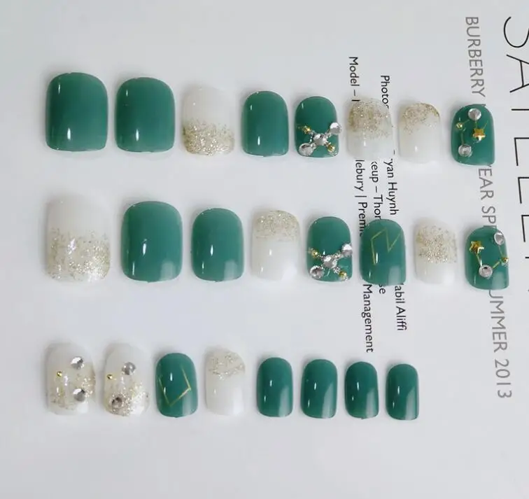 Высокий светильник не легко царапается Короткая овальная форма. Идеально подходит для ежедневных и вечерние. Спецификация: В том числе: 1 набор из 24 гвоздей + 1 лист клея. Цвет: как на изображении. Упаковано в полиэтиленовый пакет.