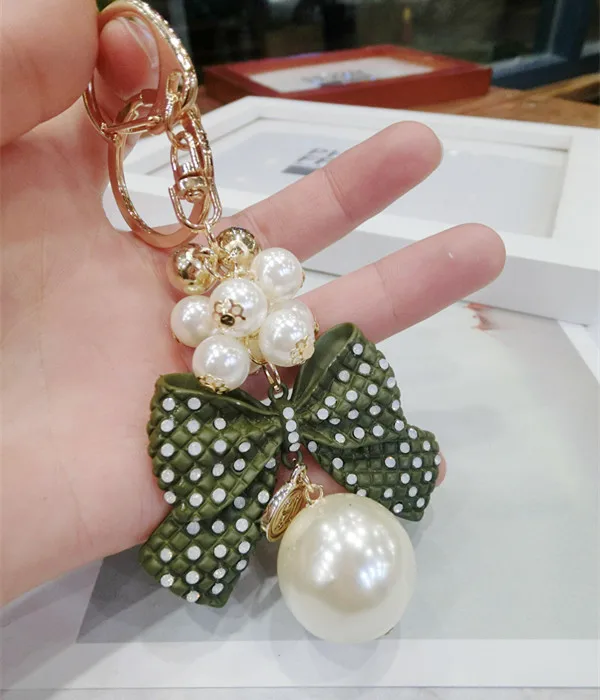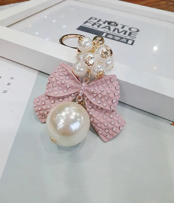 Розовый бант, стразы, жемчуг, цепочка для ключей, женская сумка, аксессуары для автомобиля, для девочек, брелок, кошелек, очаровательные ювелирные изделия, милый брелок, подарки для женщин