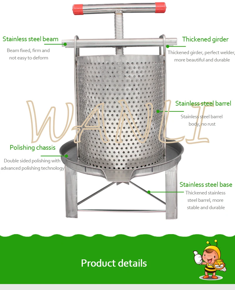 Медовый пресс 304 из нержавеющей стали маленький медовый пресс восковый пресс бытовой воск пресс соковыжималка протекающая медовая сковорода