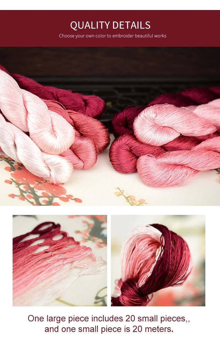 Серия цветных вышитых нитей красного цвета 400 м Бегония/поделки, ручная вышивка/аксессуары ручной работы Особенности: 1.100% шелк и высокое качество, подходит для вышивки ручной работы в suzhou. 2. Длина: 400 метров (20 метров/маленький кусок) 3. У вас есть девять цветов на выбор 4. Пожалуйста, обратите внимание, что в зависимости от дисплея продукт может произвести некоторую разницу в цвете, пожалуйста, знать и понять эту ситуацию. В комплект входит: 1 шт. (включая 20 маленьких штук)