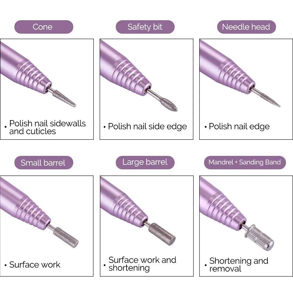 Эта электрическая пилка имеет мощный, но тихий двигатель. Он тихий и безопасный для того, чтобы сделать ваш собственный маникюр. Советы: 1. Don't let the Фрезер для ногтей, сверлильный работать в течение длительного времени. 2. Пожалуйста, удалите буровое долото после использования и держите его в сухом месте, когда его не использовать.