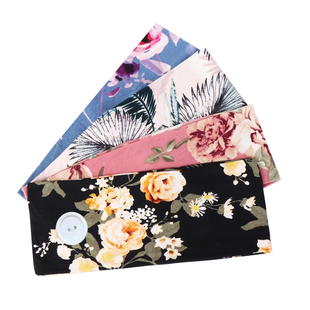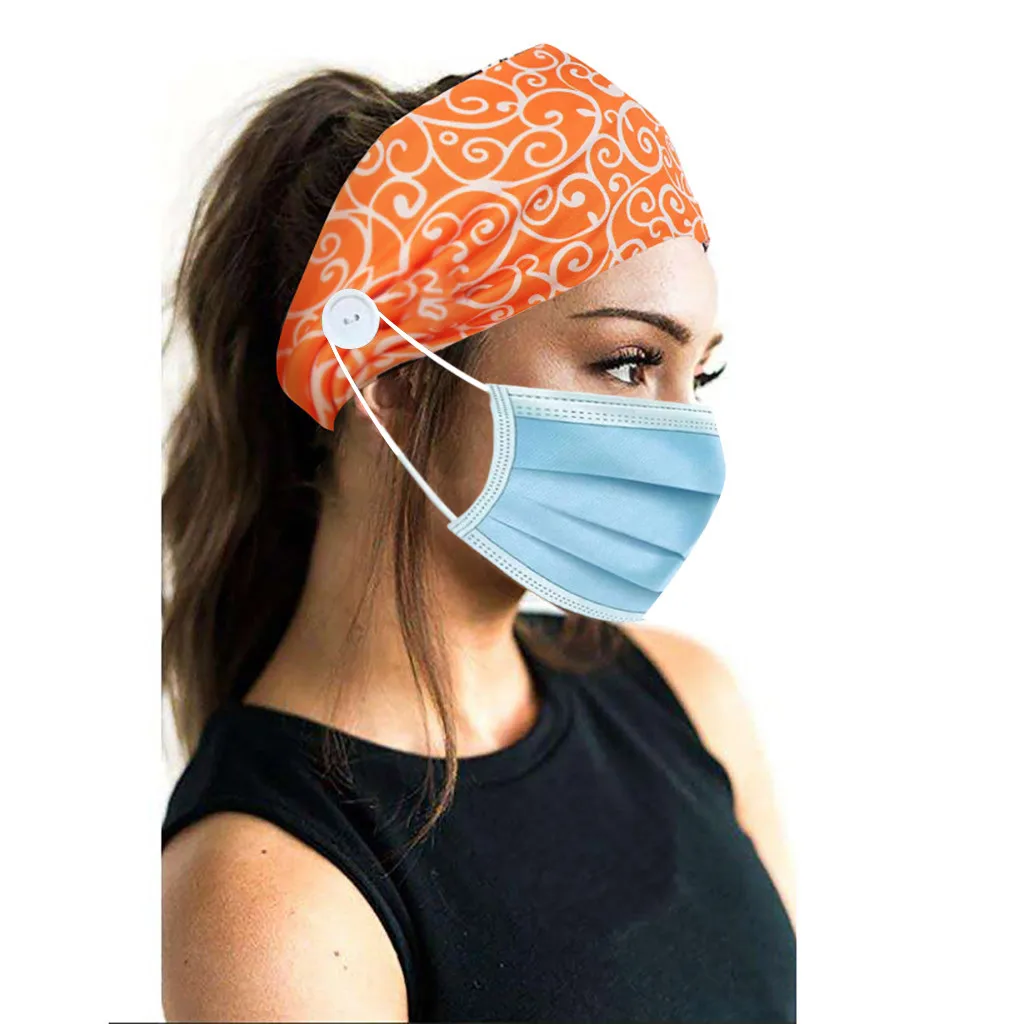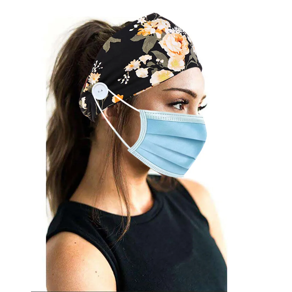 Повязка для волос с принтом и держателем для лица на пуговицах, Защитная повязка на голову с ушками