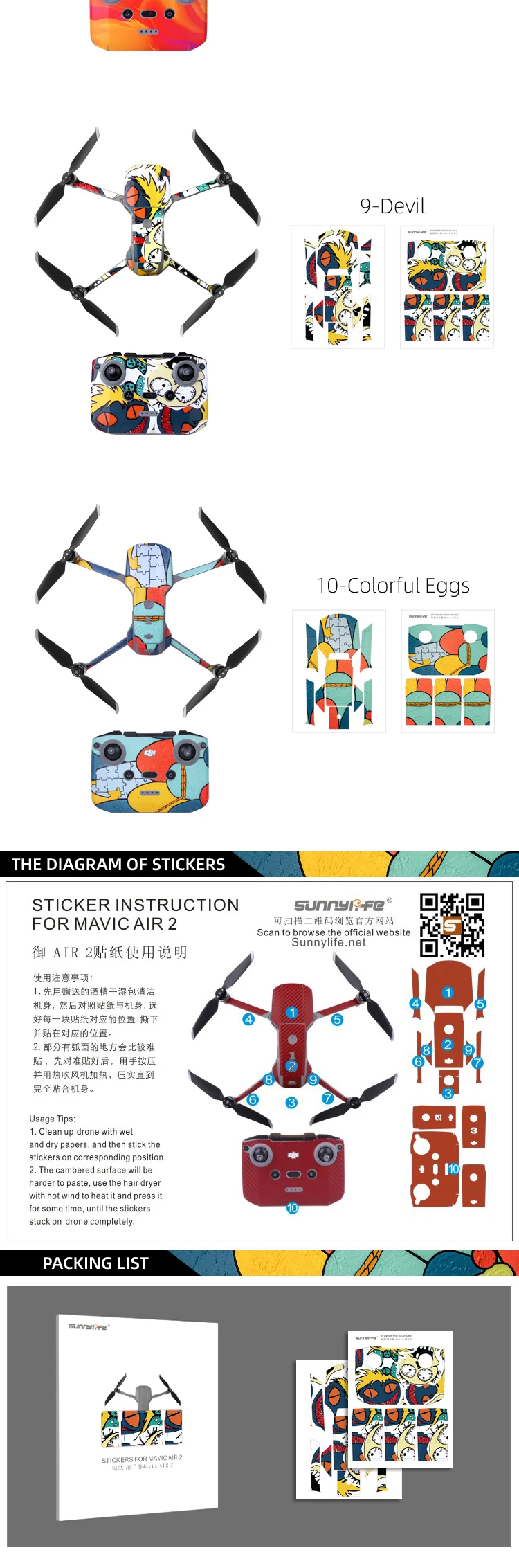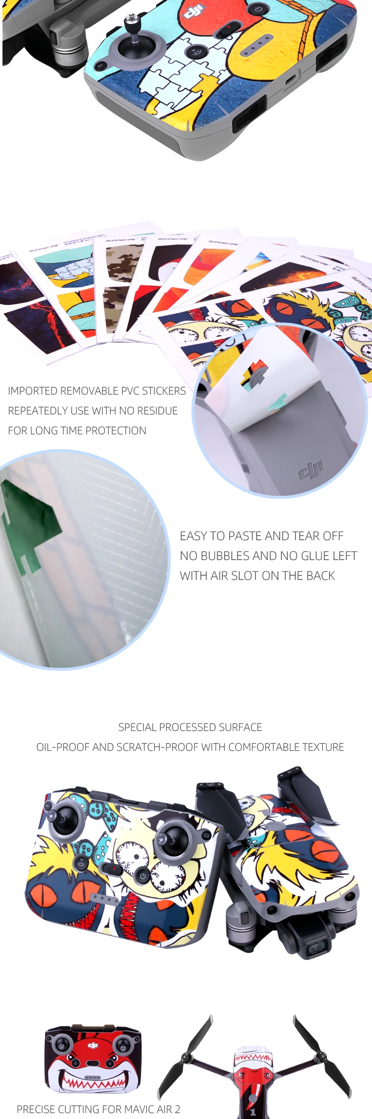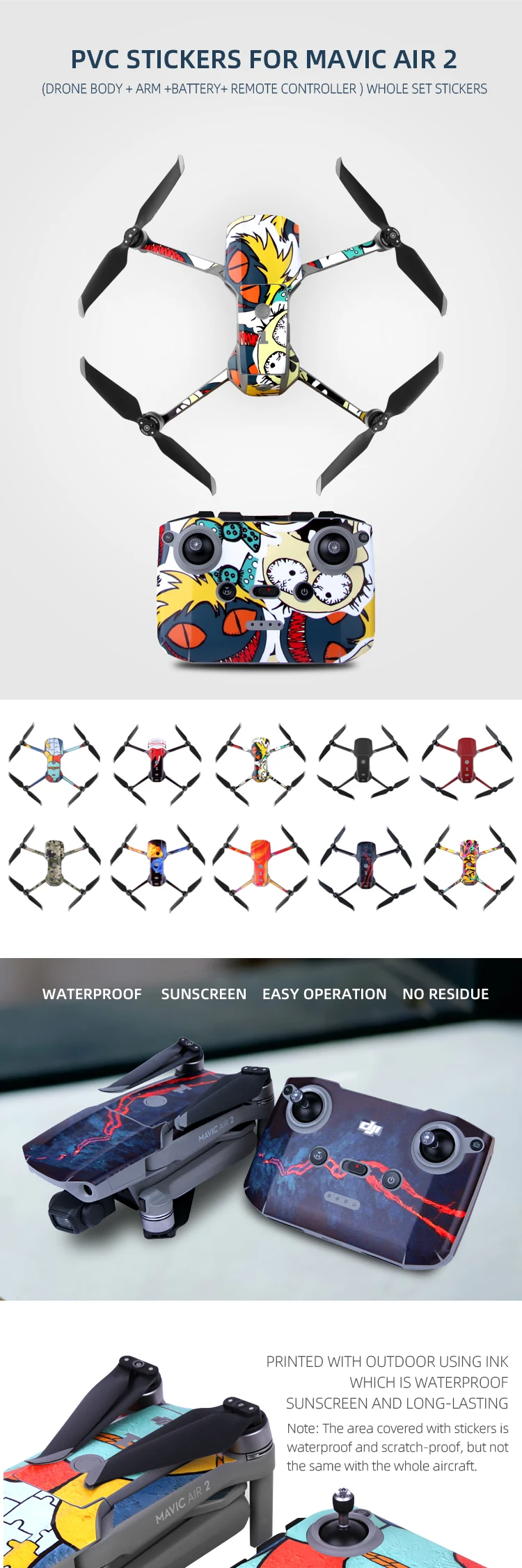 DJI Mavic Air 2 ПВХ наклейки защитная пленка Водонепроницаемые царапины наклейки Кожа для DJI Mavic Air 2 Аксессуары для дрона