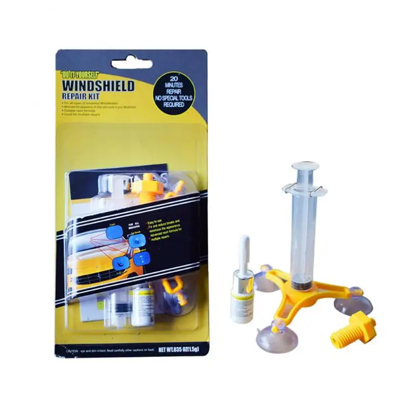 DIY windshield repair kit is designed to fill the air cavity with a strong penetrating adhesive that will bond the loose glass and restore the visibility.