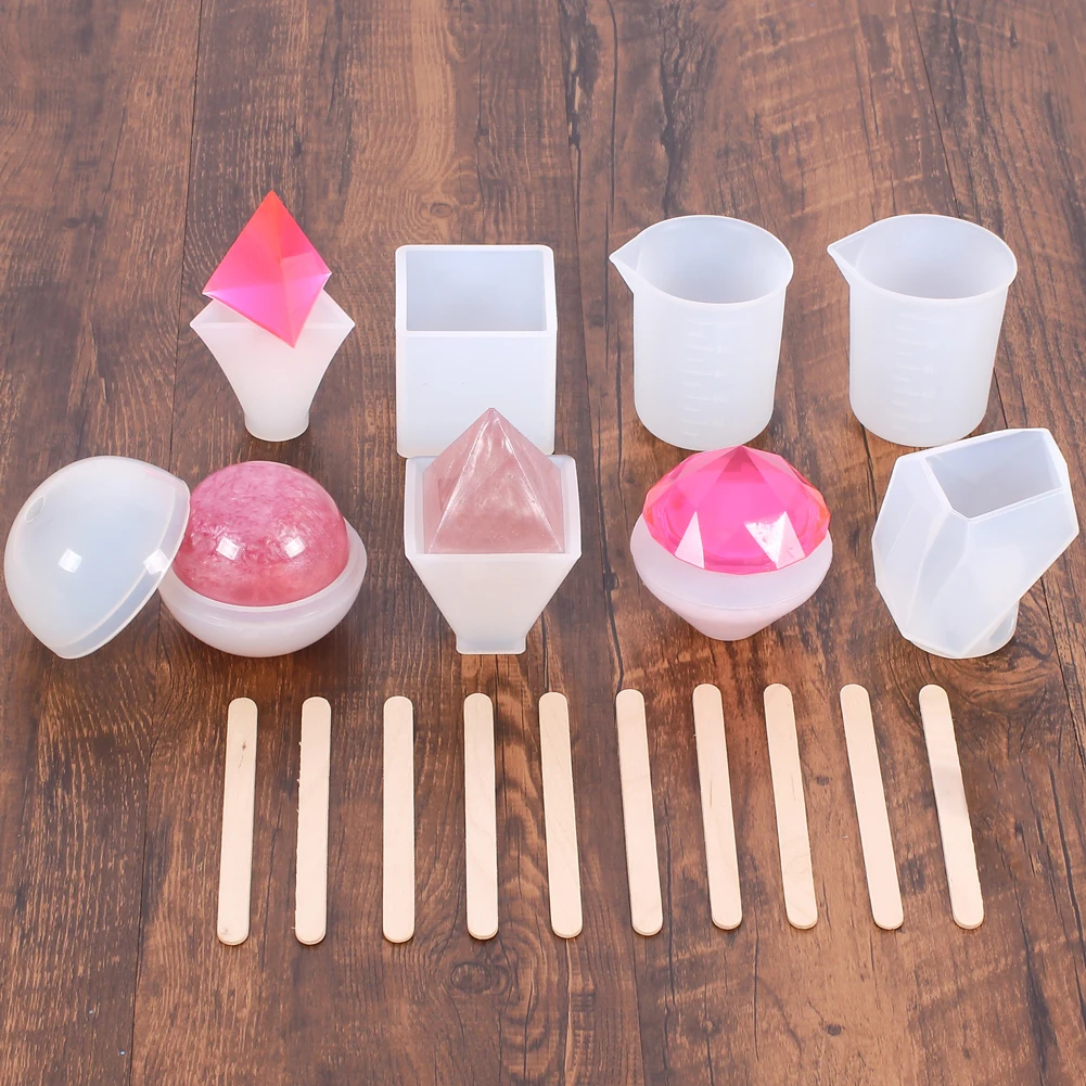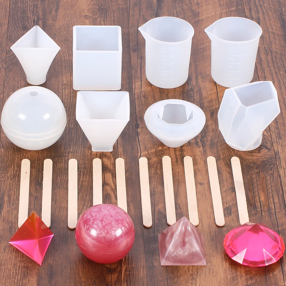Особенности: 100% новый и высокое качество. Многоразовые, прочные, легко отклеиваются, легко моются. Широкое применение-может быть применено для diy различных ручной работы и ювелирных изделий, таких как брелок, серьги, ожерелья, подвески, браслеты и многое другое, с множеством операционных инструментов, поможет вам сделать их более легко. Параметры: Размер: как показано на фотографии Высокое качество ювелирных изделий формы материал силикона, который является гибким и гладким. Упаковка включает в себя: 6 силиконовых смоляных форм, 2 x мерные чашки, 10 x деревянная палка.