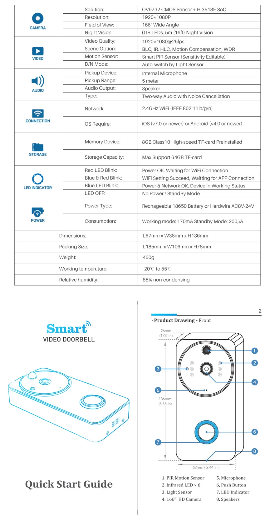 -Время полной зарядки: 5V 1A/2A адаптер: 8 часов