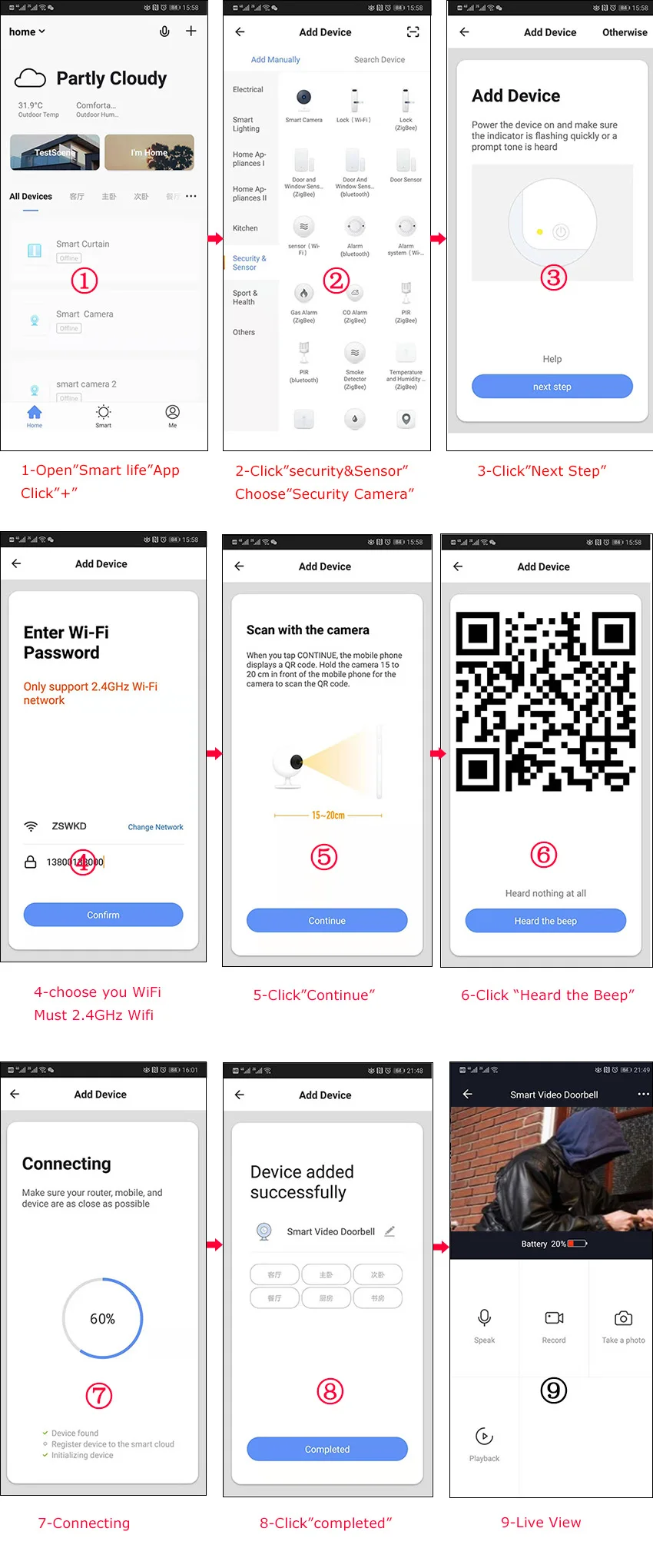 -Установите сцену смарт-сценариев через приложение с другими продуктами tuya. Например, когда кто-то нажимает на дверной звонок, звуковой сигнал сирены или другие.