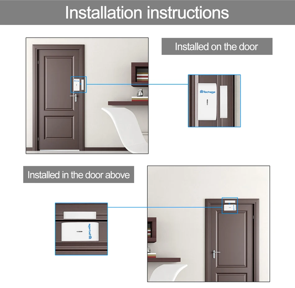 Дверной датчик используется для обнаружения закрывания и открытия двери и состоит из передатчика и магнита двух частей. Он может быть установлен на двери, окна или любой предмет, который может быть закрыт и открыт. Когда передатчик отделен от магнита, датчик двери отправит сигнал тревоги на панель сигнализации, хост будет оповещать.