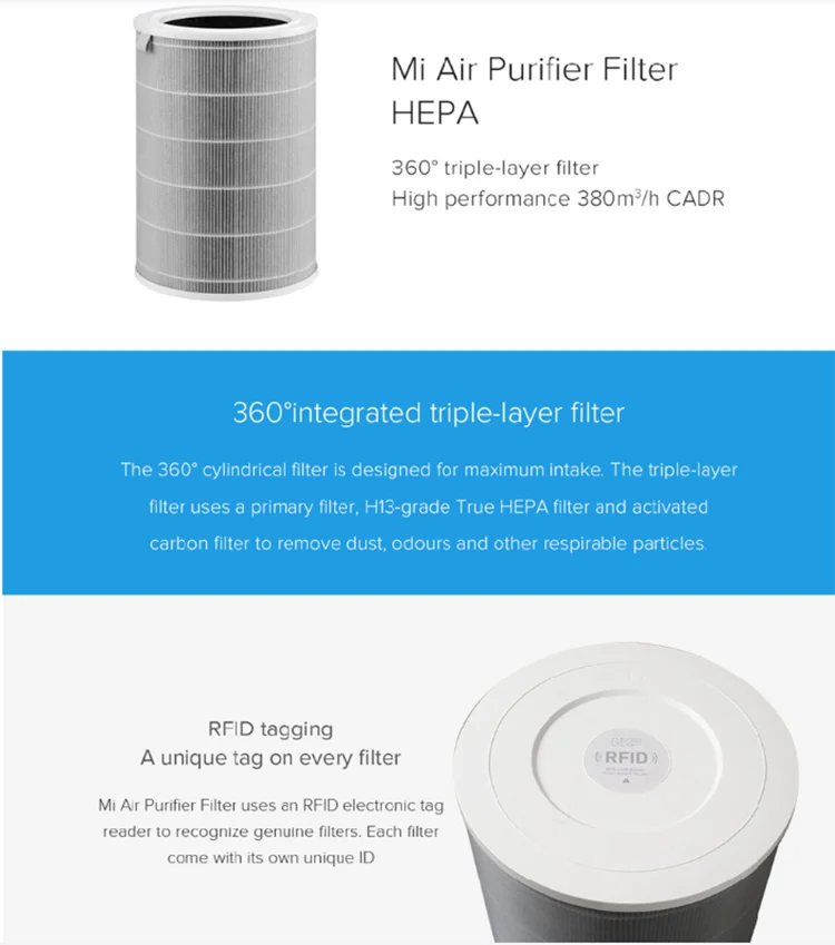 Mijia очиститель воздуха стандартная версия фильтра 3 слоя высокоэффективной очистки загрязняющих веществ, таких как взвешенные твердые вещества, Ингаляционные твердые частицы, формальдегид (Очиститель воздуха Xiaomi, очиститель воздуха Xiaomi 2, очиститель воздуха Mijia Pro, Универсальный Очиститель Воздуха Xiaomi Mijia 2S)